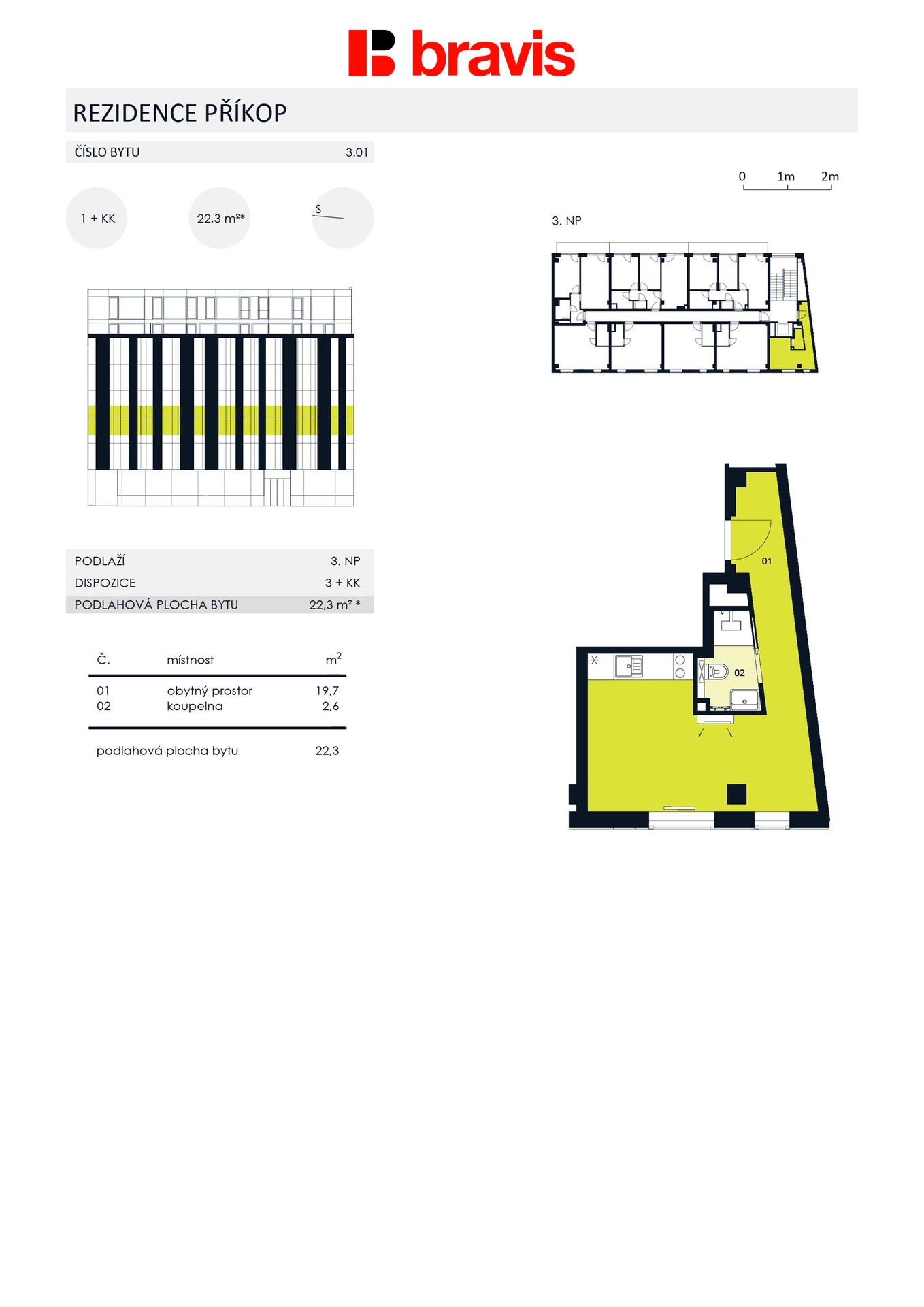 Byt o celkové ploše 22 m2 se nachází ve 3. NP bytového domu s výtahem.