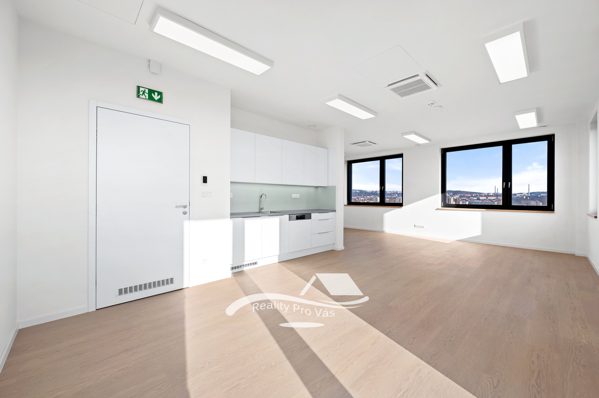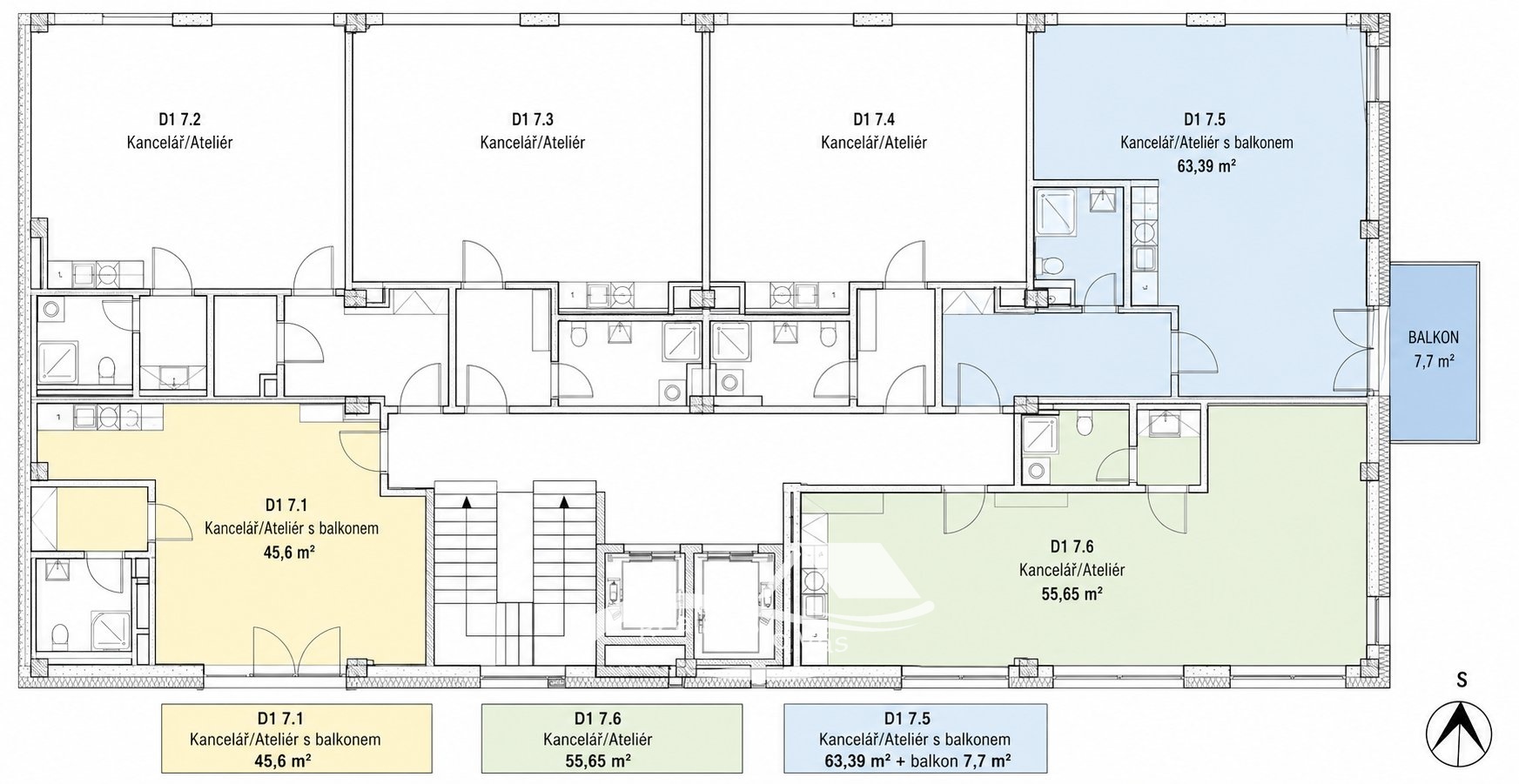 • Ateliér 64 m² včetně balkonu 7,7 m² – nájemné 22.300 Kč + služby 3.800 Kč / měsíc + DPH