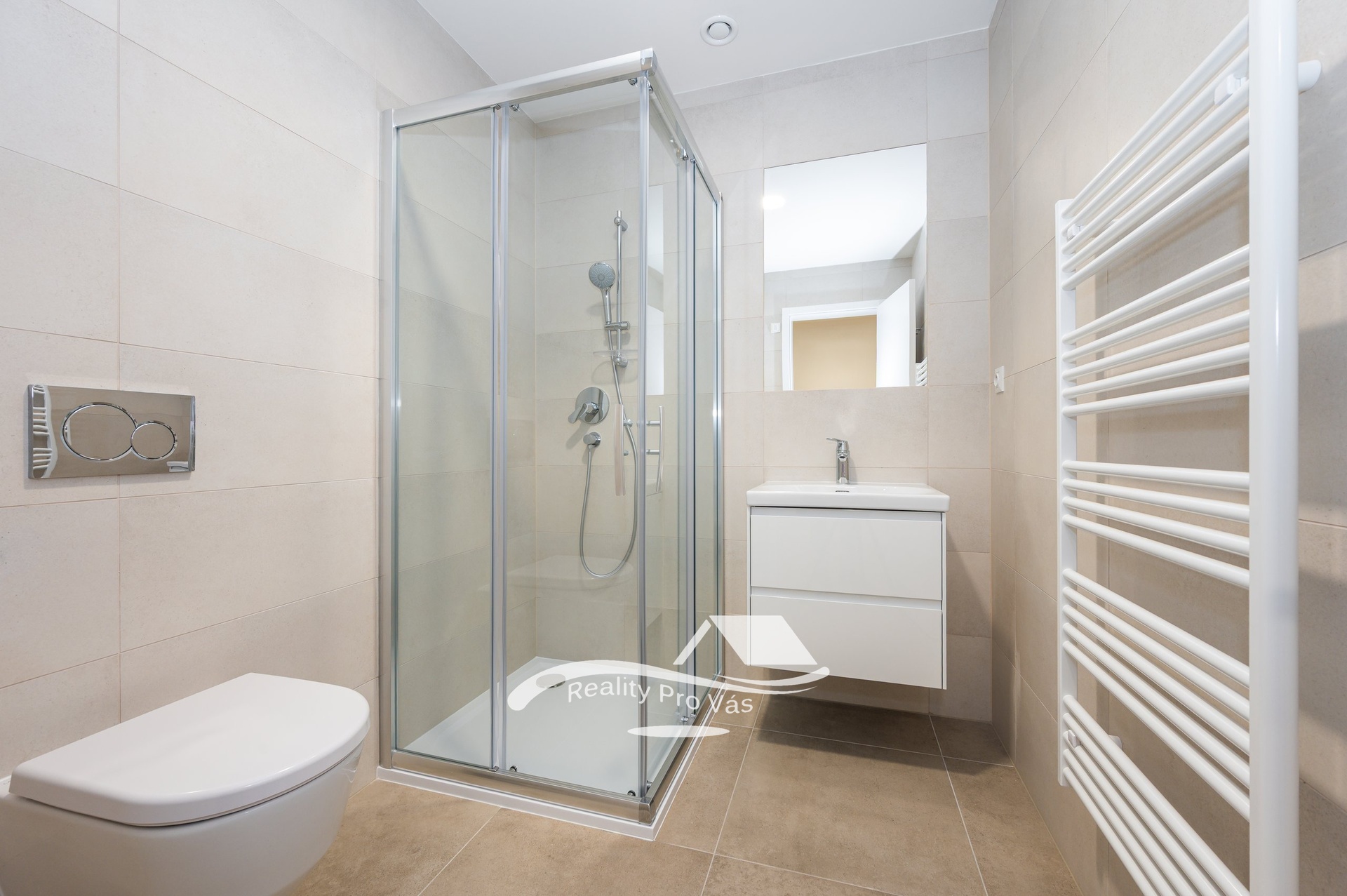 • kvalitní koupelnové vybavení a dlažba