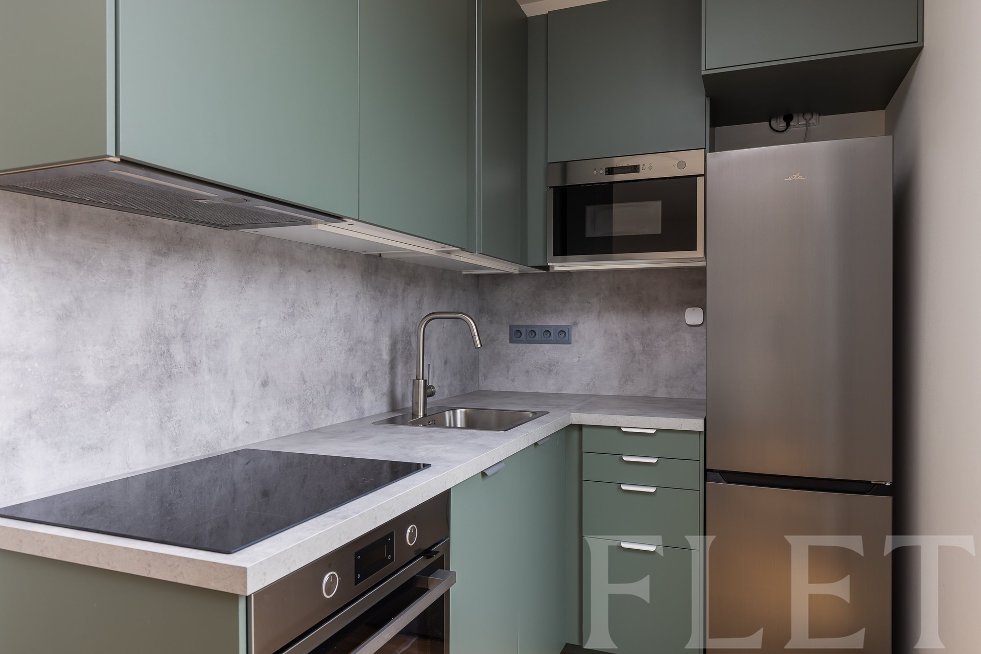 Interiér je řešen s důrazem na maximální využití prostoru. Vstupní část navazuje na hlavní obytnou místnost se stylovým kuchyňským koutem vybaveným moderními spotřebiči. Světlé tóny a velká okna dodávají bytu vzdušnost a příjemnou světelnou atmosféru během celého dne.
