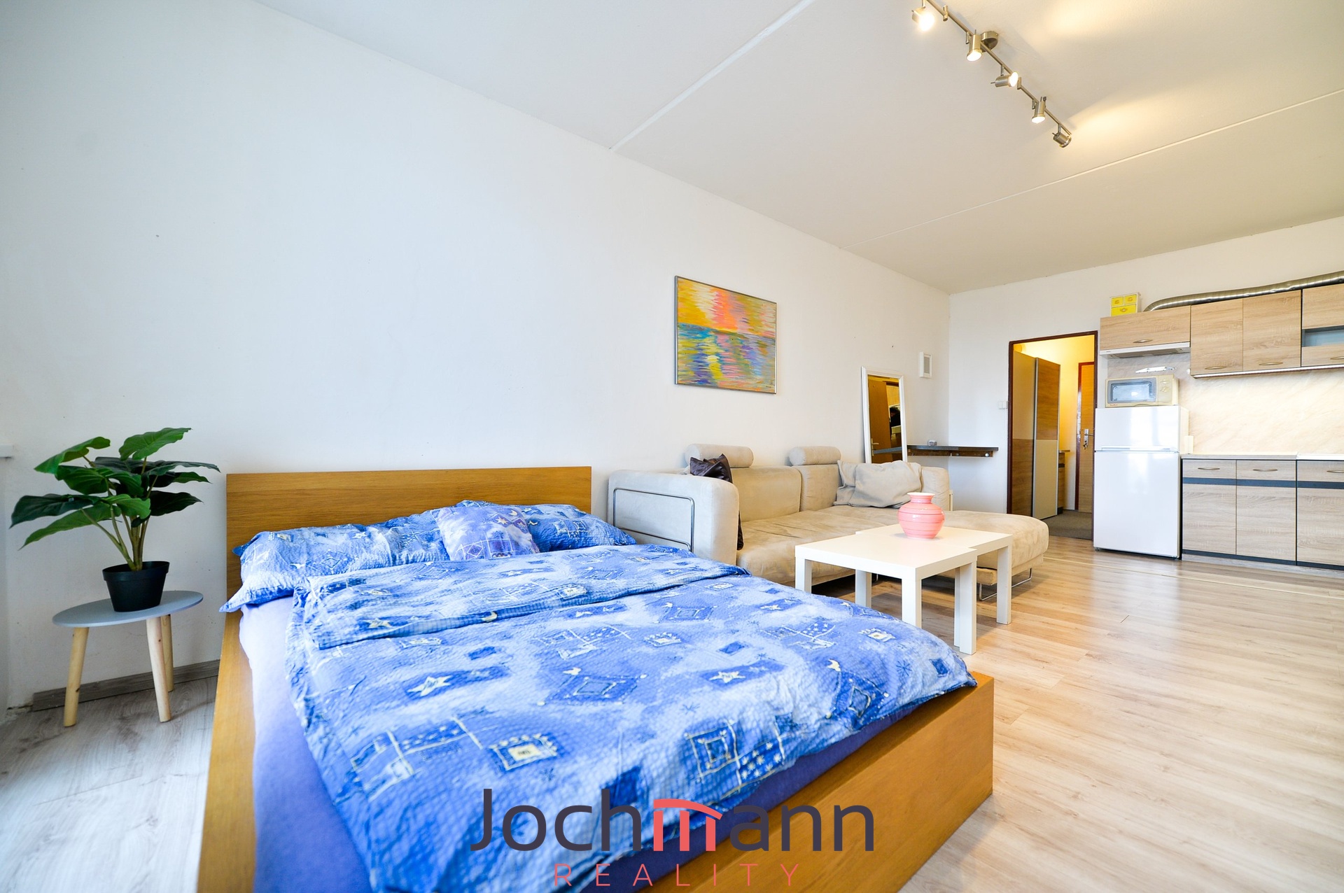 Krásně prosvětlený, částečně zrekonstruovaný, kompletně vybavený byt s fantastickým výhledem a novou lodžií o výměře 4m² se nachází v posledním patře revitalizovaného bytového domu. Vnitřní dispozice bytu nabízí vstupní chodbu s šatní skříní, hlavní obytnou místnost se zónou pro spaní a kuchyňským koutem, koupelnu s toaletou a pračkou.