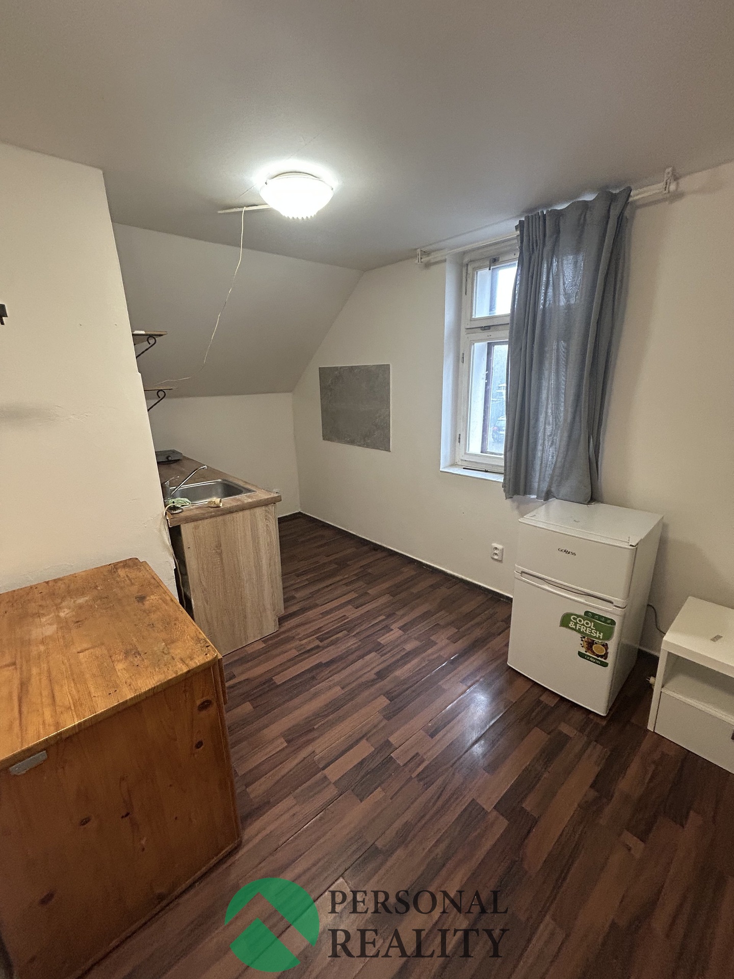 Dispozice bytu: Byt se nachází v prvním patře. Je vhodný pro jednu osobu, nebo osobu s dítětem. Jedna místnost s kuchyní a sociální zařízení. Výhodou jsou nižší náklady na bydlení.