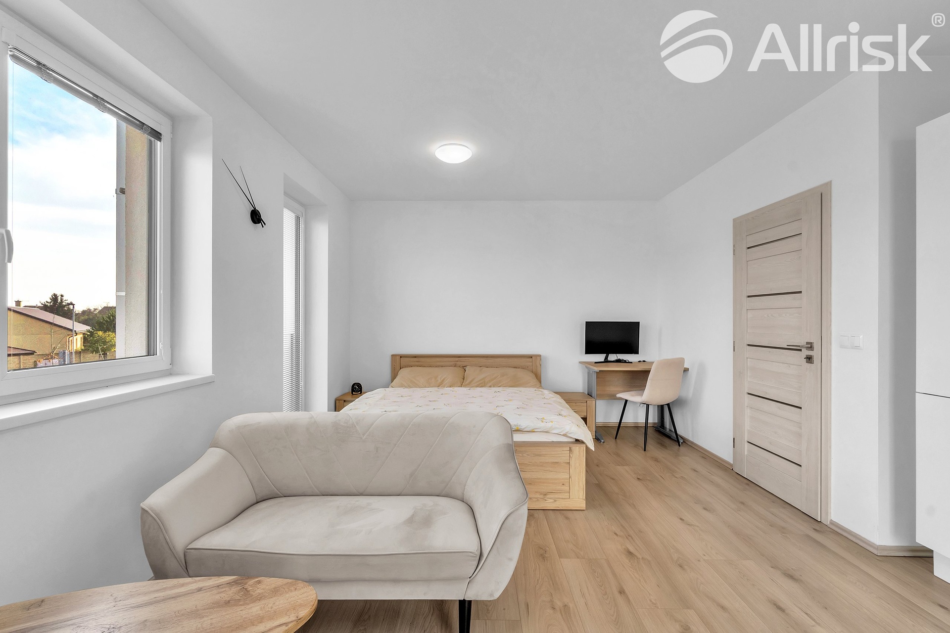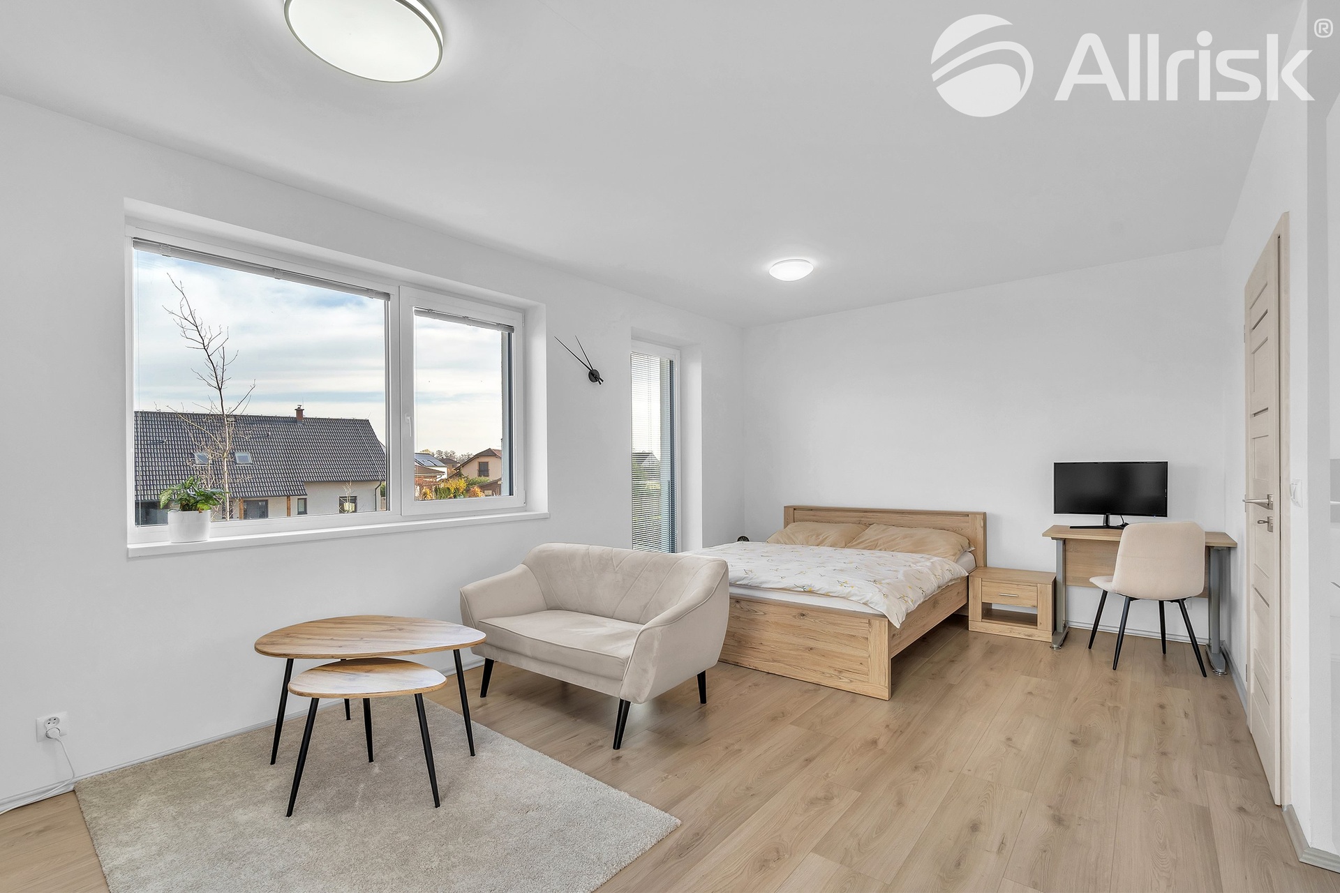 Aktuální nájemník by rád veškeré vybavení odprodal svému nástupci (konferenční stolek, stůl pod TV včetně televize, sedačka dvoumístná, postel, noční stolky, PC stůl se židlí, věšák, botník, pračka)