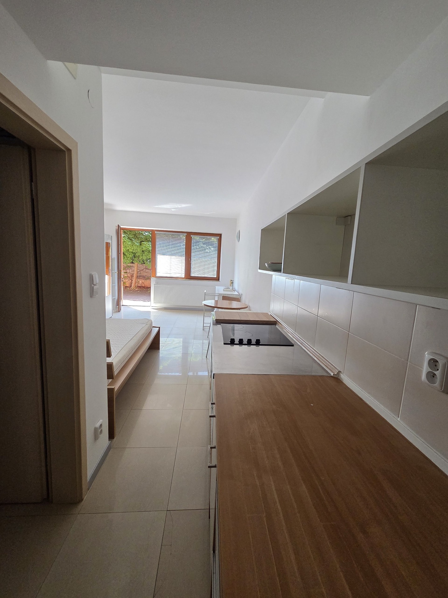 Nabízíme pronájem bytu 1+kk na ul. Padělky v Ostopovicích. Byt o CP 30 m2 je zařízený: velká postel, police, skříň. Byt má prostornou koupelnu se sprchovým koutem. V kuchyni je lednice a varná deska. Byt ve dvoře domu, velmi klidné prostředí. Bezproblémové parkování u domu, cca 5 min ke Kampusu v Brně.