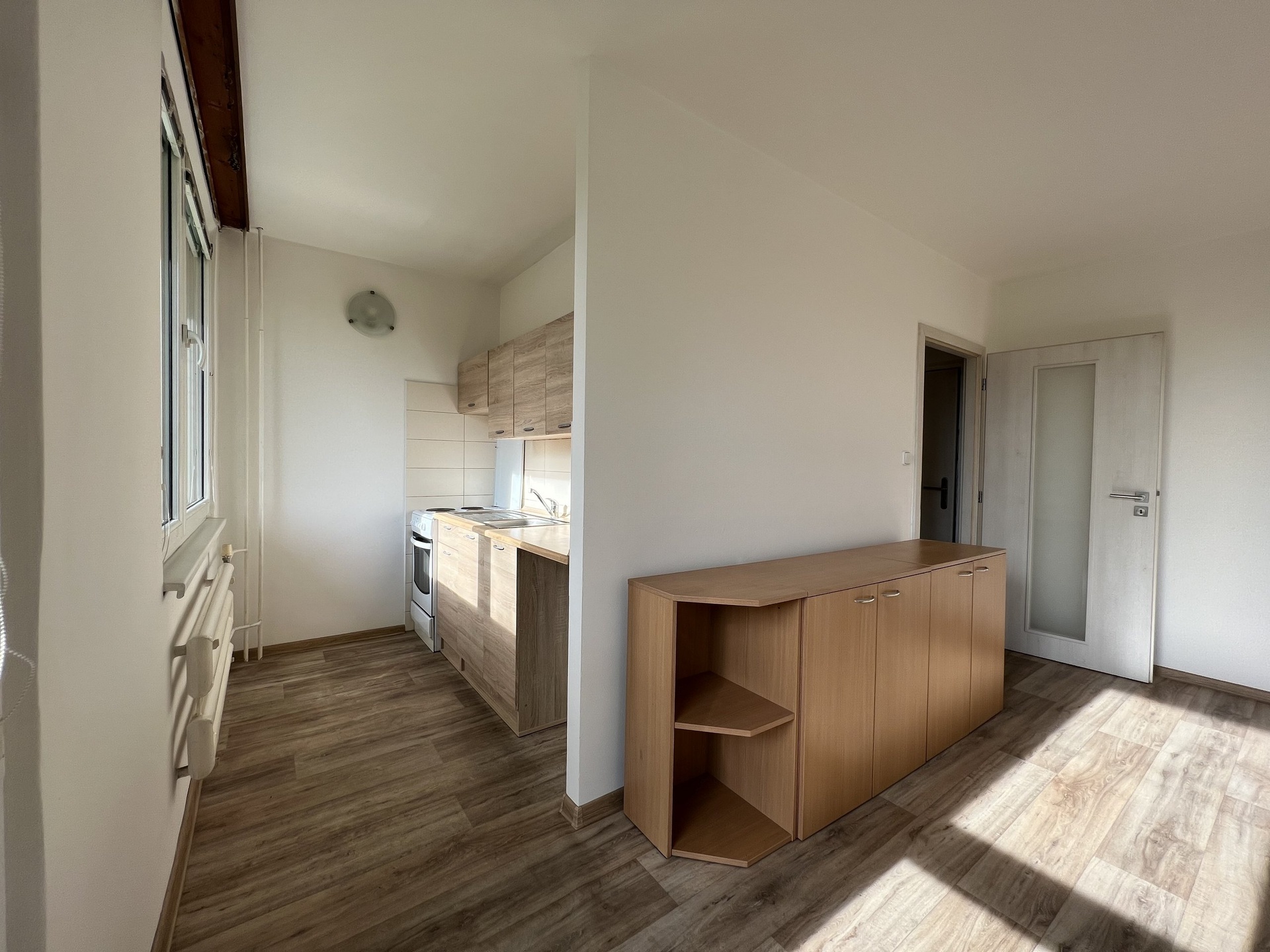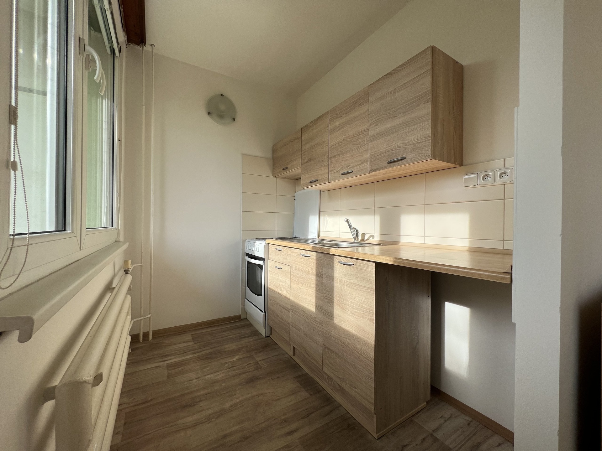 Nabízíme k pronájmu pěkný světlý byt o dispozici 1+kk s lodžií (35,40 m2) a sklepem v Pardubicích - Polabinách. Byt se nachází v 3. patře panelového bytového domu s výtahem. Dům je po revitalizaci a má zateplenou fasádu. Byt je po rekonstrukci a pronajímá se minimálně zařízený - komody, skříňka, věšák. Byt je vybaven kuchyňskou linkou, el. sporákem, automatickou pračkou. Okna bytu a prostorná lodžie jsou orientovány na jih. Parkování je možné na parkovišti před domem. V místě je veškerá občanská vybavenost: Kaufland, základní škola, školka, obchody, zdravotní středisko, atd. Zastávka MHD je naproti domu přes ulici. Cena za pronájem činí 10.800,-Kč/měsíc + 3.500 zálohy na služby a energie/měsíc. Vratná kauce ve výši 20.000,-Kč. Provize RK je jedno měsíční nájemné plus DPH. Nastěhování je možné od 01.12.2025. Majitel si vyhrazuje právo výběru nájemce. Pro více informací a sjednání prohlídky kontaktujte makléře.