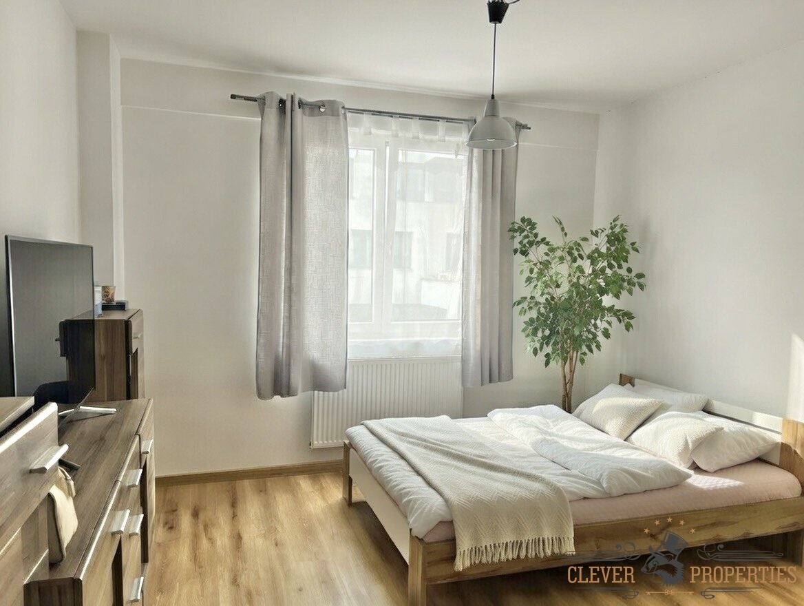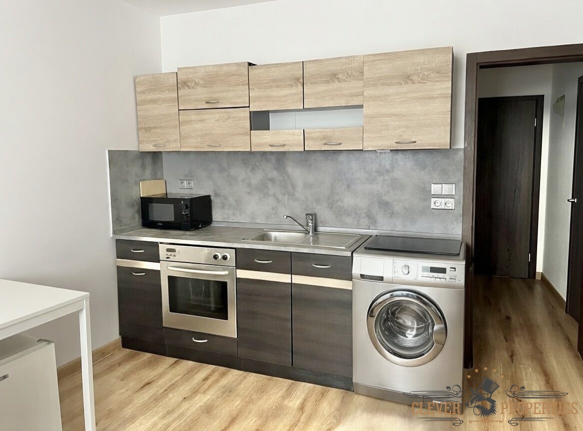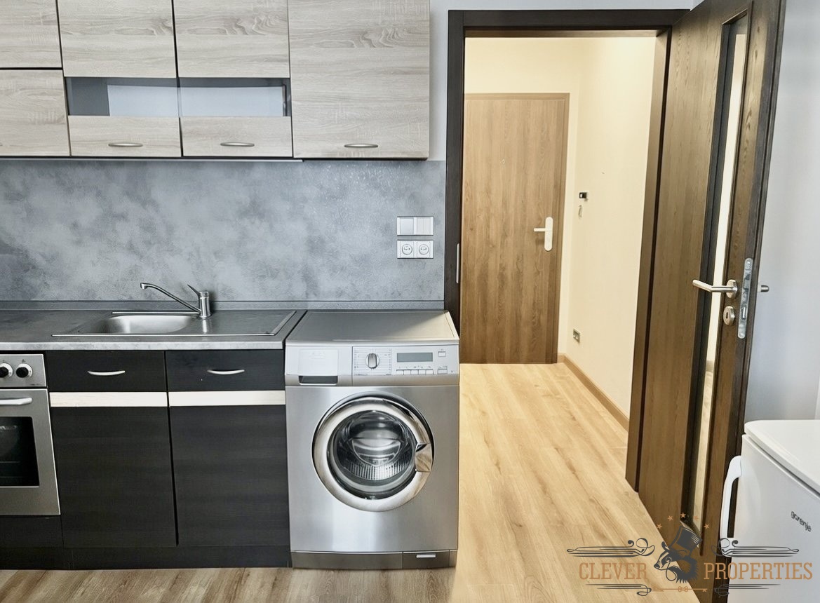 Byt má podlahovou plochu 29 m² a tvoří jej hlavní obytný prostor s dostatkem denního světla, kuchyňský kout vybavený moderní kuchyňskou linkou a koupelnu se sprchovým koutem a toaletou. Byt se pronajímá částečně vybavený - k dispozici zůstává postel, jídelní stůl se dvěma židlemi, lednice a skříňka pod televizí. Díky tomu je byt vhodný k okamžitému nastěhování, zároveň však ponechává prostor pro vlastní doladění interiéru.