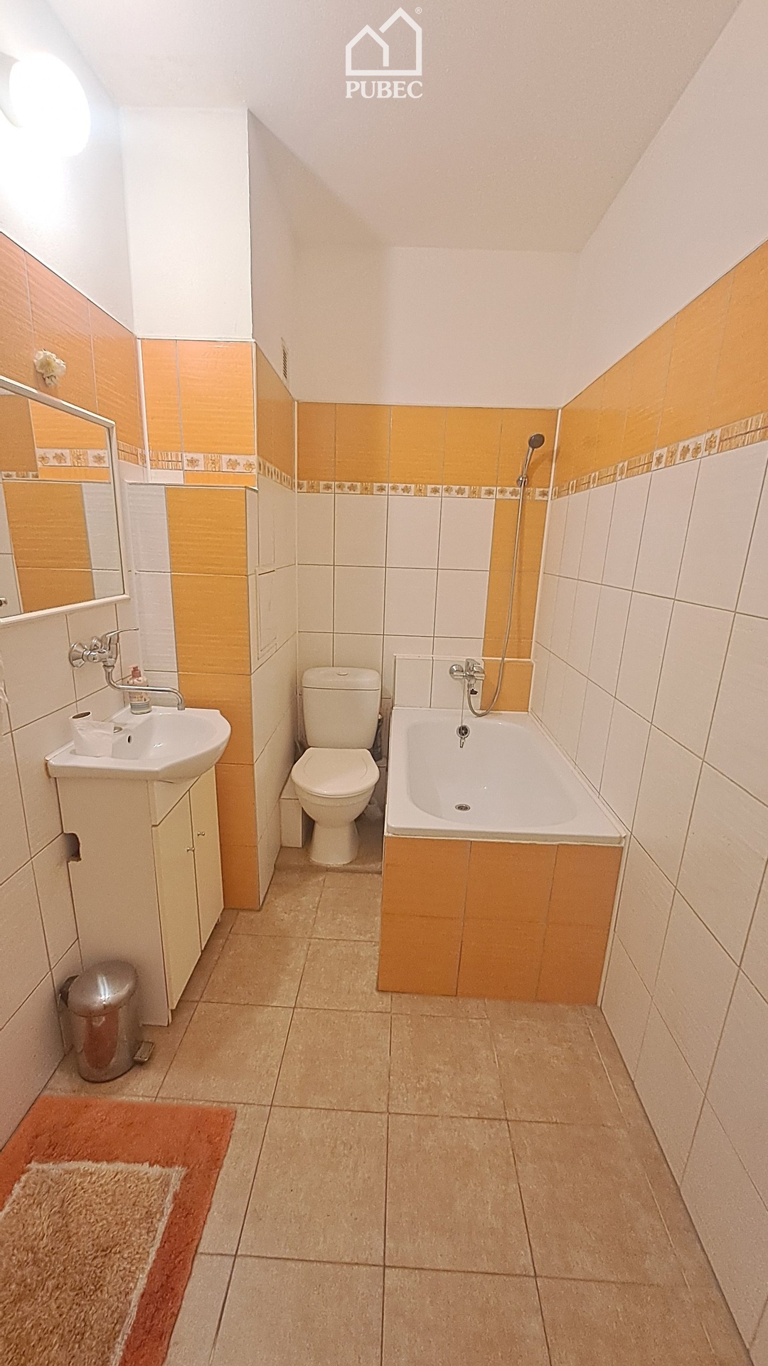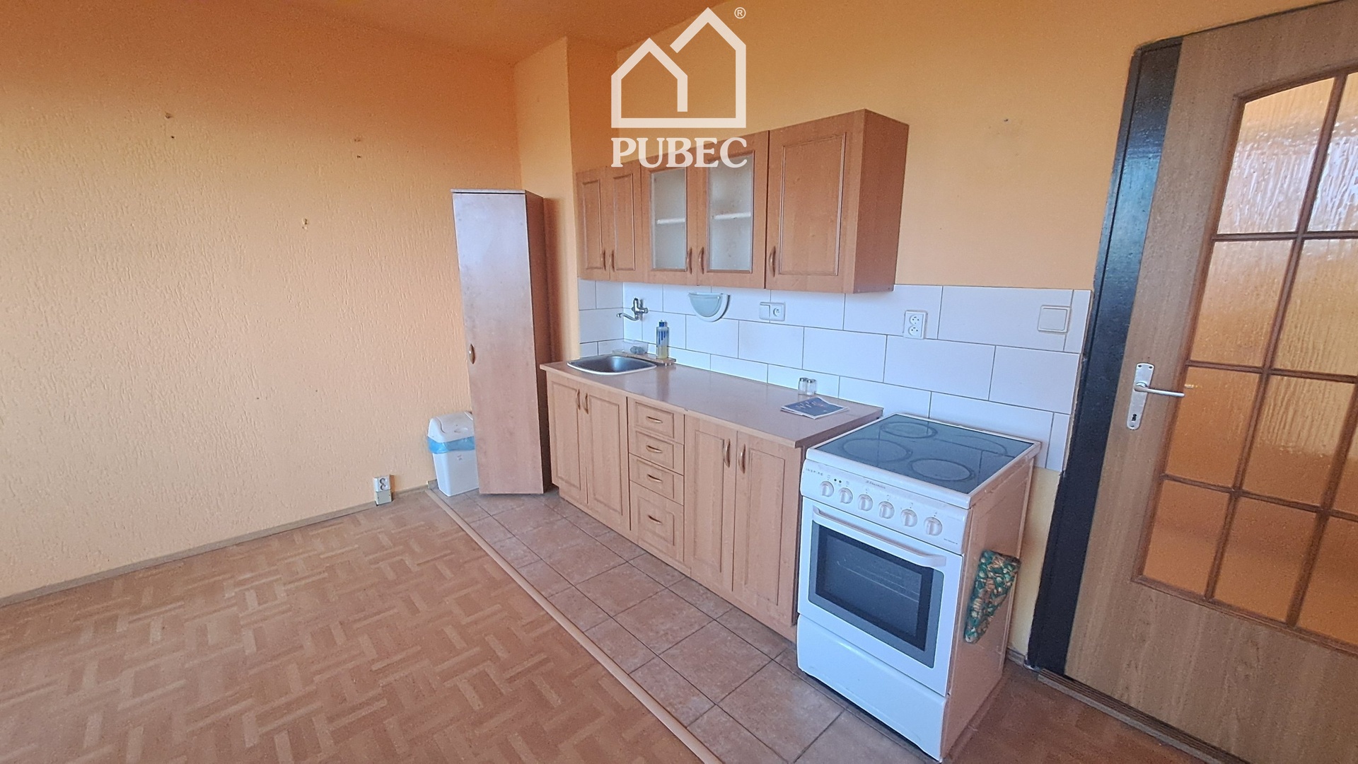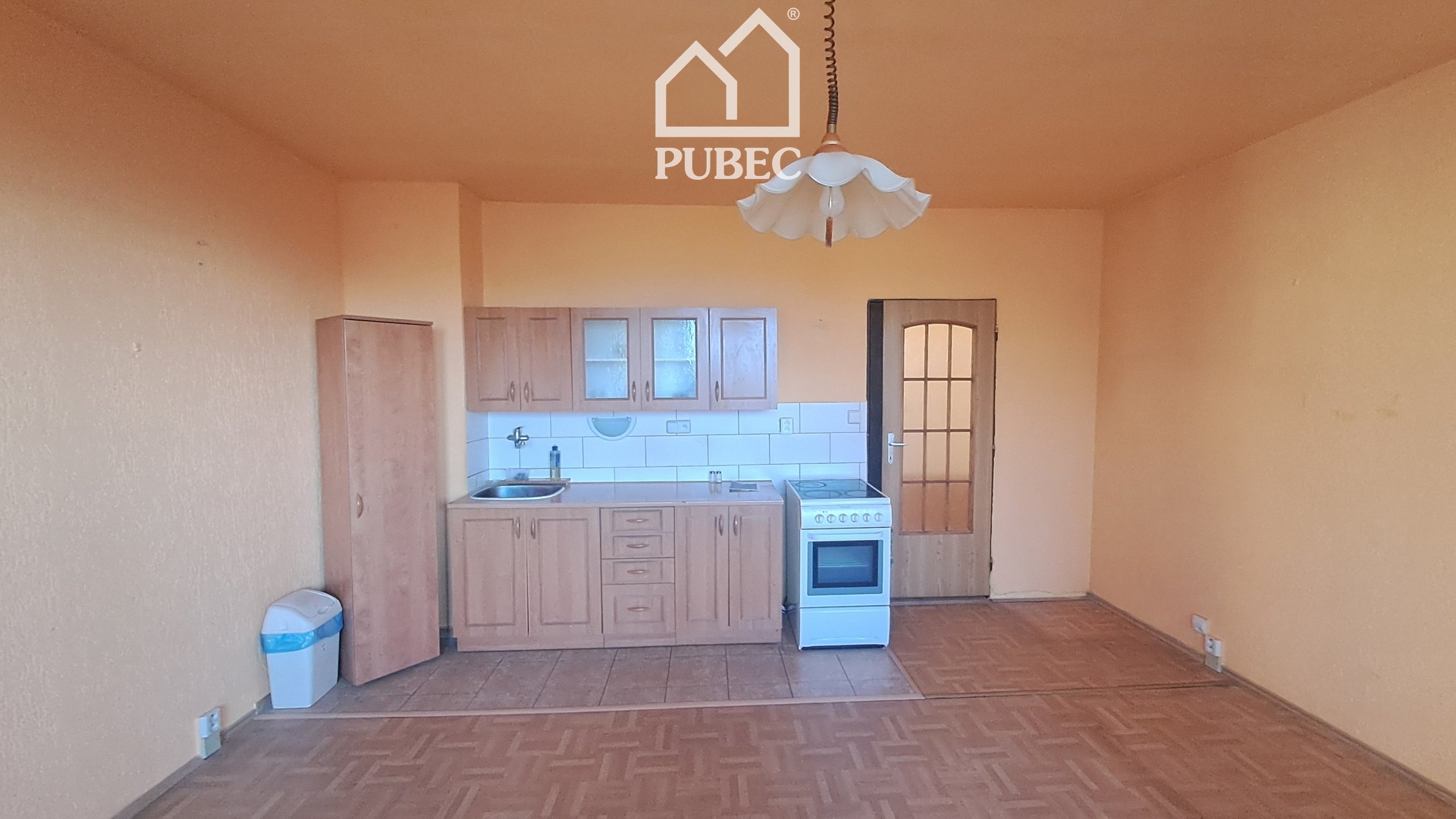 Byt o velikosti 27 m² se nachází ve 3. patře kompletně revitalizovaného panelového domu s výtahem. Byt je rozdělený na vstupní předsíň, koupelnu s vanou a WC a prostorný obytný pokoj s kuchyňskou linkou a výstupem na vlastní, zasklenou lodžii. Kuchyňská linka je vybavena elektrickým sporákem.