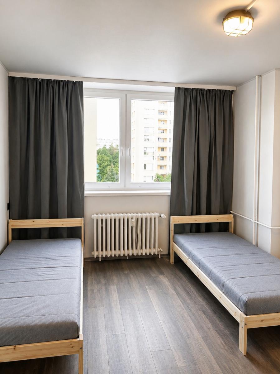 Nabízíme k pronájmu útulný, plně zařízený byt 1+kk v klidné lokalitě Střížkov. Byt je vhodný pro 12 osoby. Metro C stanice Střížkov je vzdálena pouhých 7 minut pěšky. Přímo naproti domu se nachází supermarket Lidl. V areálu domu mají nájemníci k dispozici grilovací zónu, dětské hřiště a biliár. Veškeré vybavení je v pořádku a byt je připraven k okamžitému nastěhování.