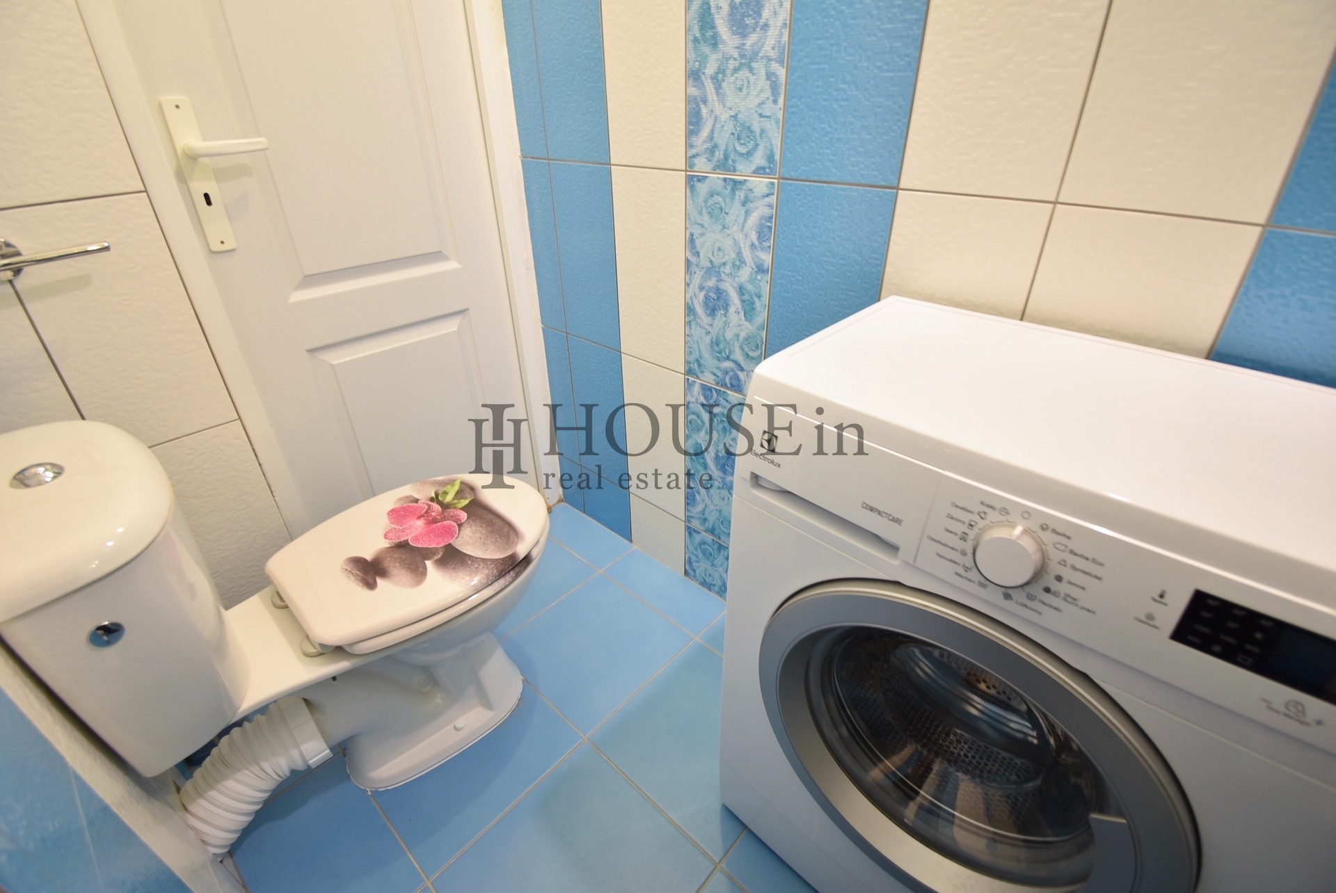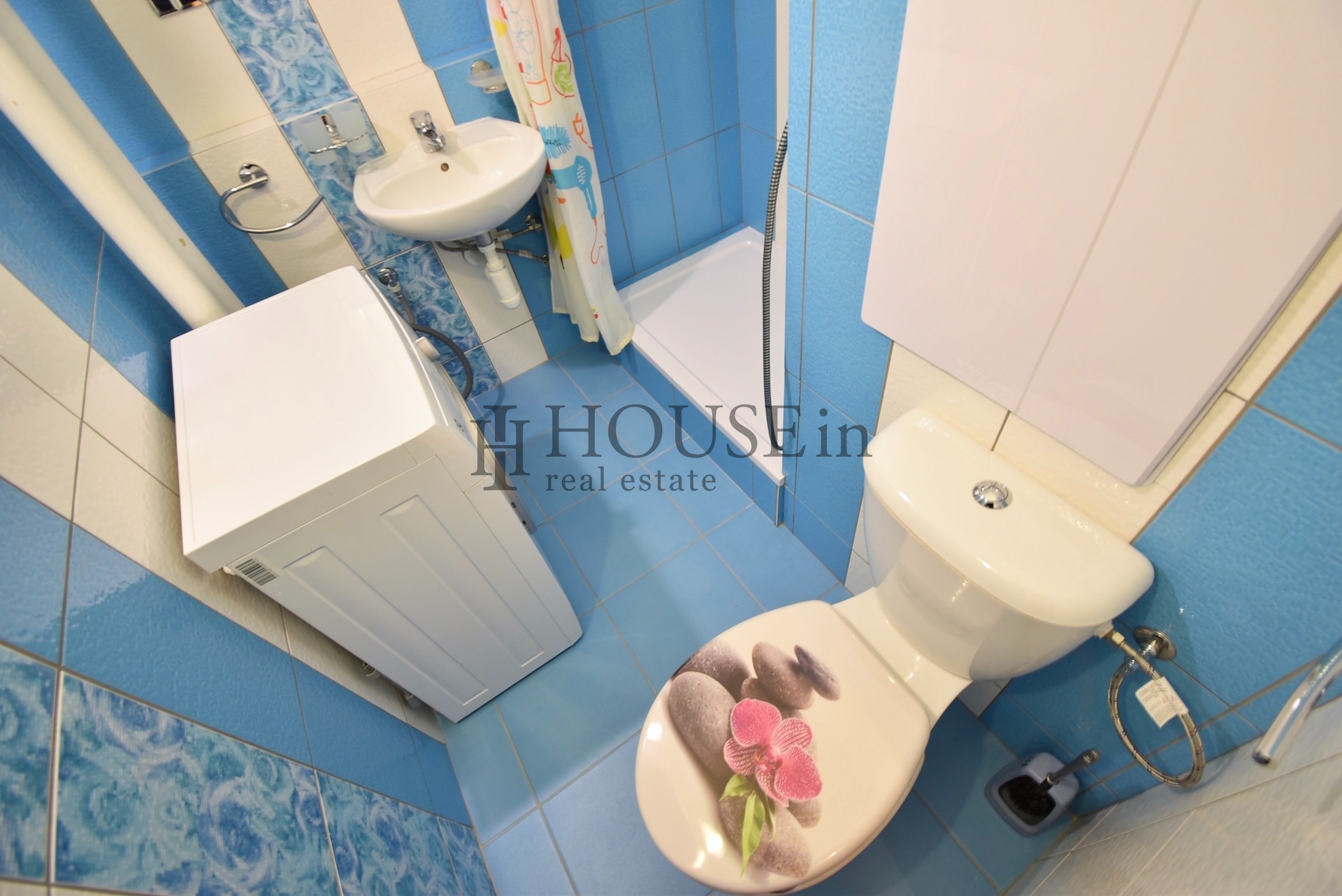Dispozice a vybavení: předsíň s novou kuchyňskou linkou, obývací pokoj s novým nábytkem (jednolůžková postel, psací stůl, židle, konferenční stůl, komoda a mikrovlnná trouba, lednice a šatní skříň - bude dodána majitelem) a koupelna se sprchovým koutem a pračkou.