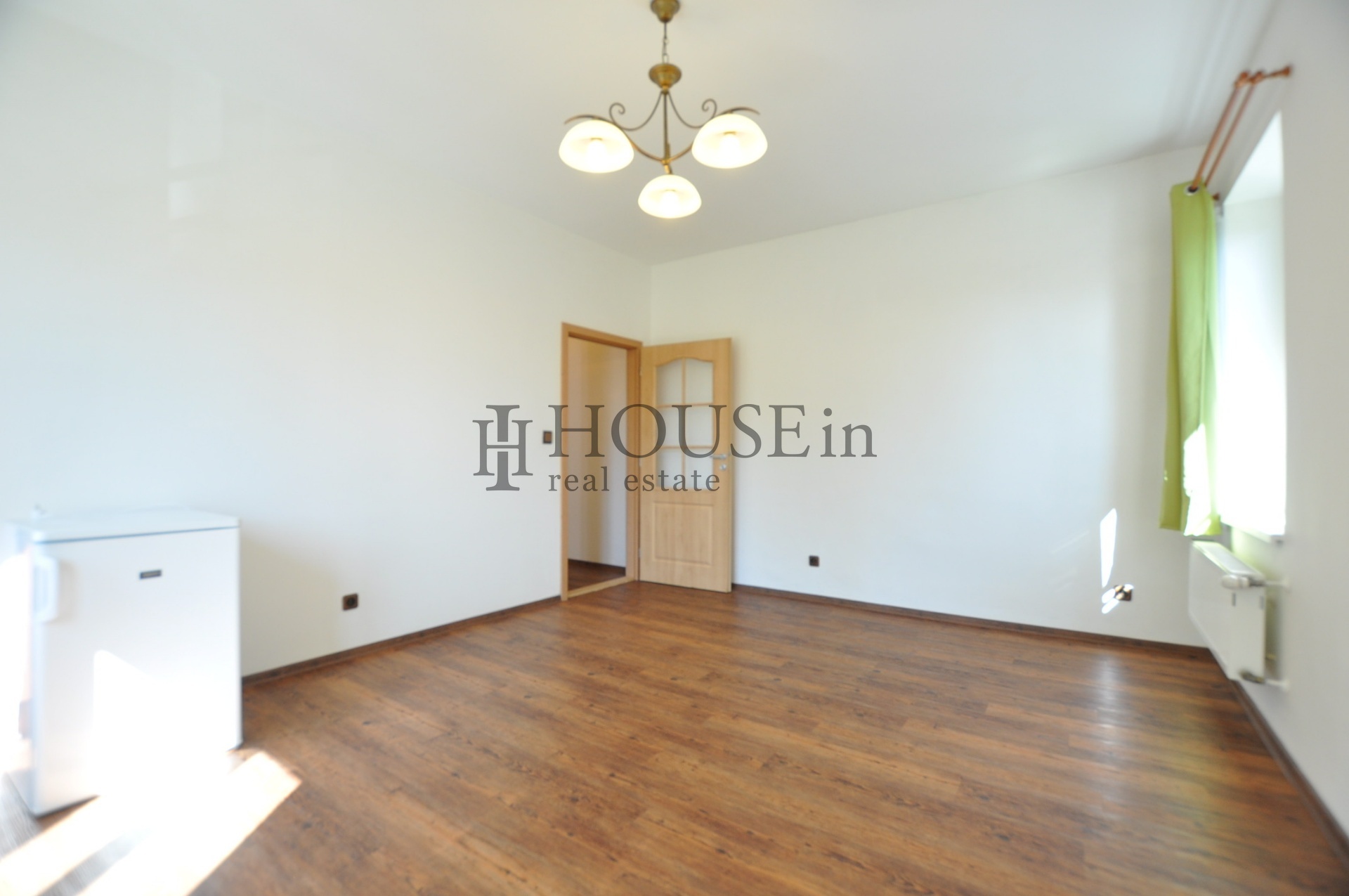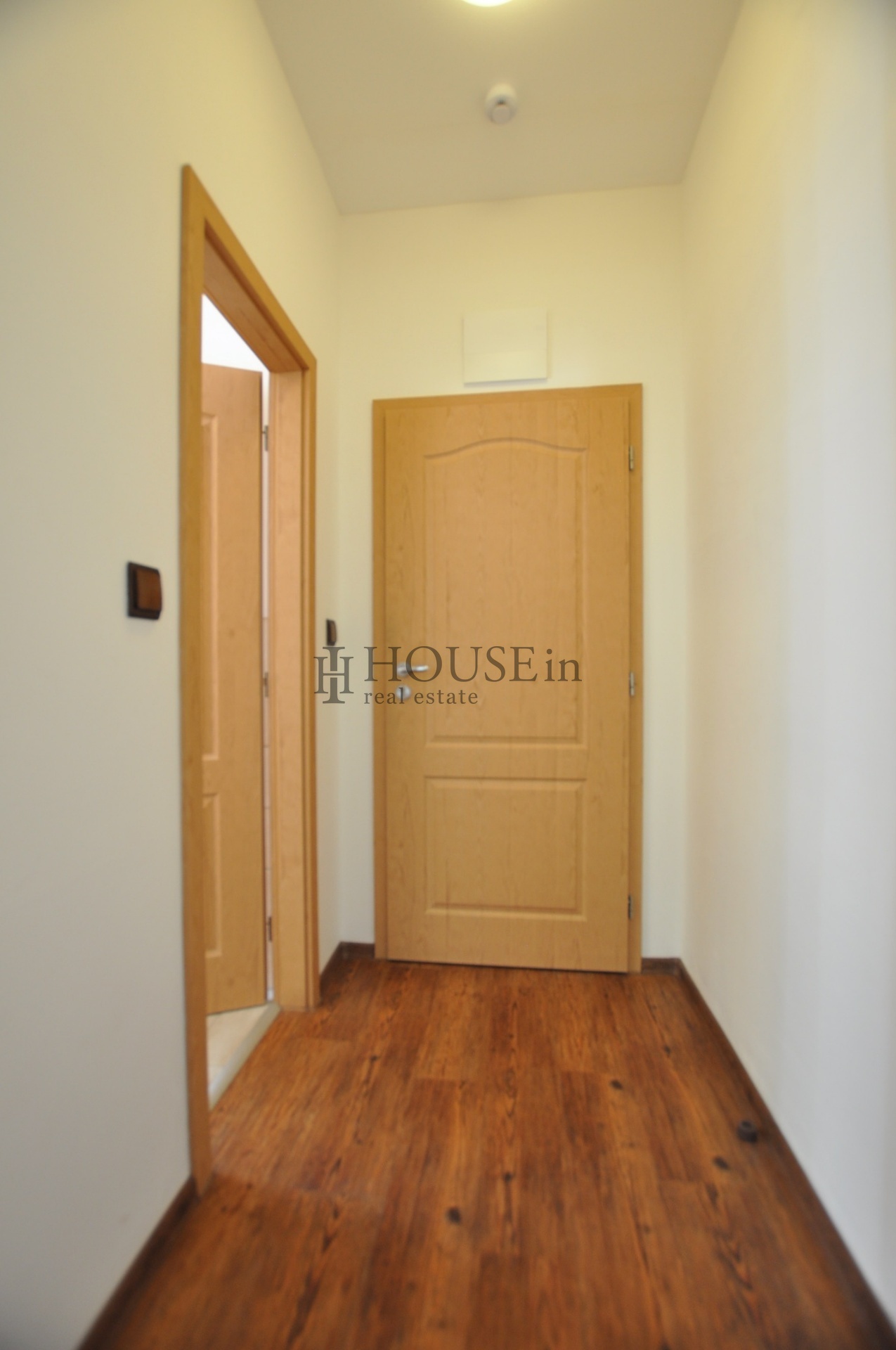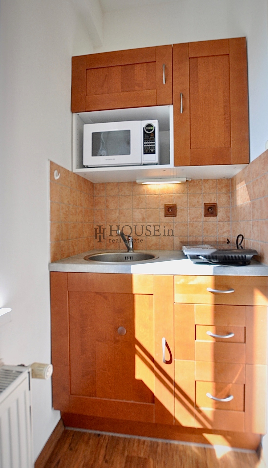 Byt nabízí předsíň, koupelnu se sprchovým koutem a toaletou a prosvětlenou obytnou místnost s kuchyňským koutem orientovanou do klidné zahrady. Kuchyňská linka je vybavena indukční varnou deskou, lednicí s mrazákem a mikrovlnnou troubou s grilem. Internet je již zahrnut v ceně nájmu.