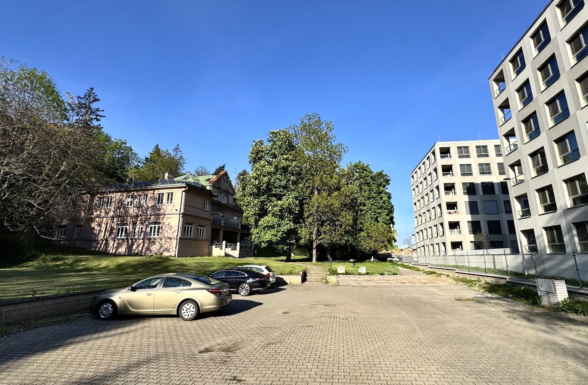 Součástí domu je rozsáhlé soukromé parkoviště pro 30 aut a krásná, pečlivě udržovaná zahrada se vzrostlými stromy, kterou mohou nájemci využívat k odpočinku či grilování. Vytápění i ohřev vody jsou řešeny centrálně. Možnost pronájmu uzavřeného parkovacího stání s automatickou pojezdovou bránou za 1.050 Kč měsíčně.
