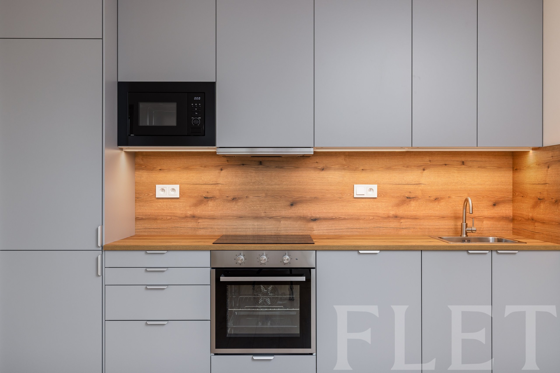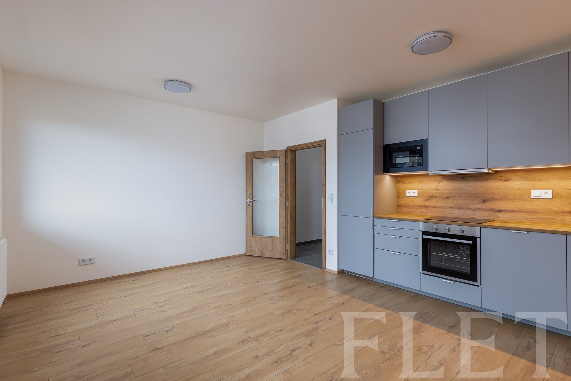 Interiér bytu zaujme stylovou kuchyní v kombinaci dřeva a neutrálních barev, která působí elegantně a přirozeně. Kuchyň je plně vybavena včetně vestavěné myčky a poskytuje dostatek úložného i pracovního prostoru. Obytná část je díky velkým oknům příjemně prosvětlená a plynule navazuje na prostorný balkon s výhledem do krásné nové zástavby. Koupelna je moderně řešená – nechybí sprchový kout, toaleta ani kvalitní sanitární vybavení.