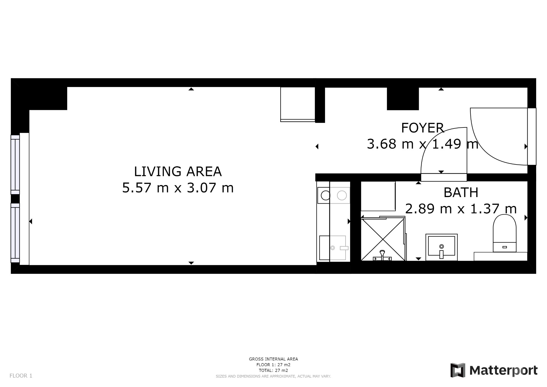 Chcete zde bydlet? Můžete! A to v bytě 1+kk o výměře 26 m2 ve 3. NP. V bytě se nachází koupelna s toaletou a obývací pokoj spojený s malým kuchyňským koutem.