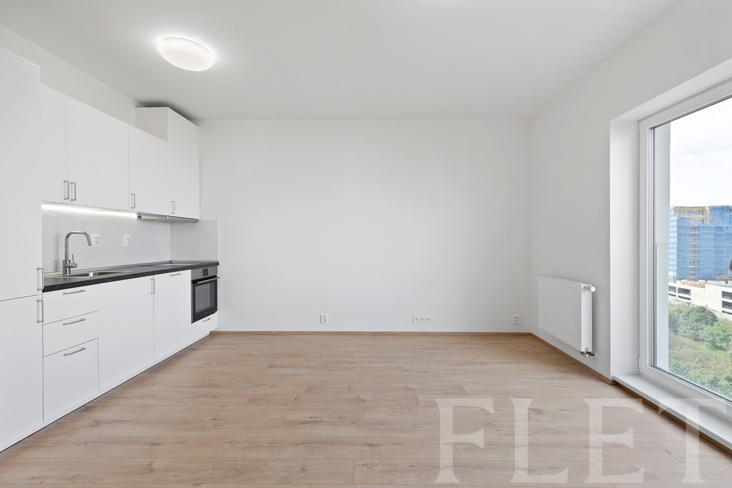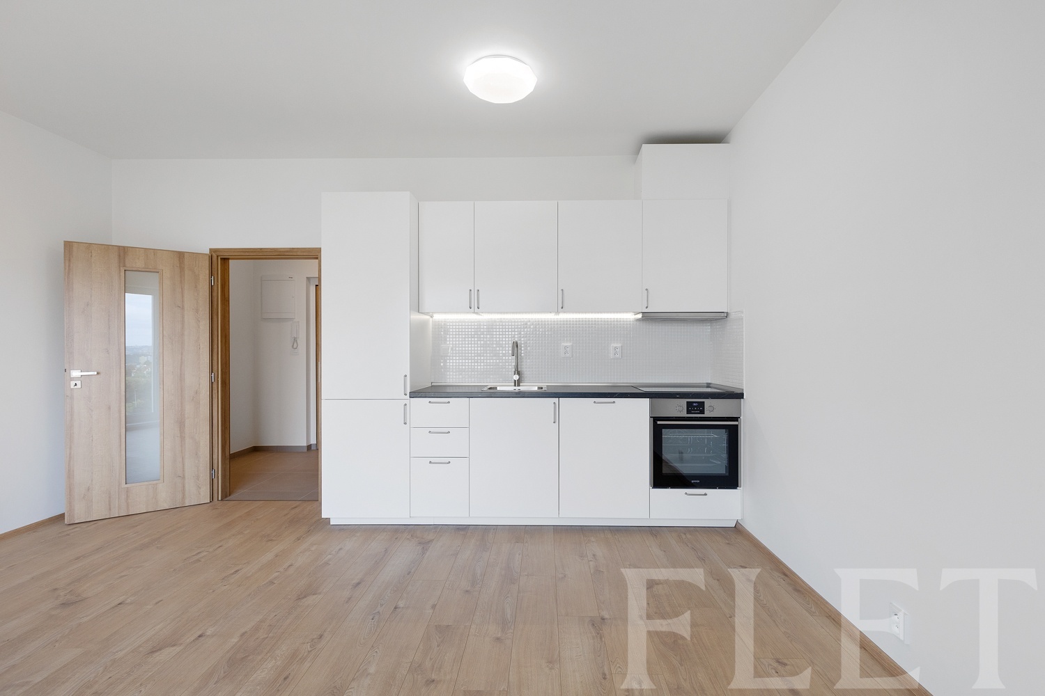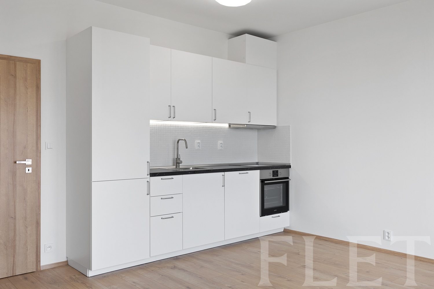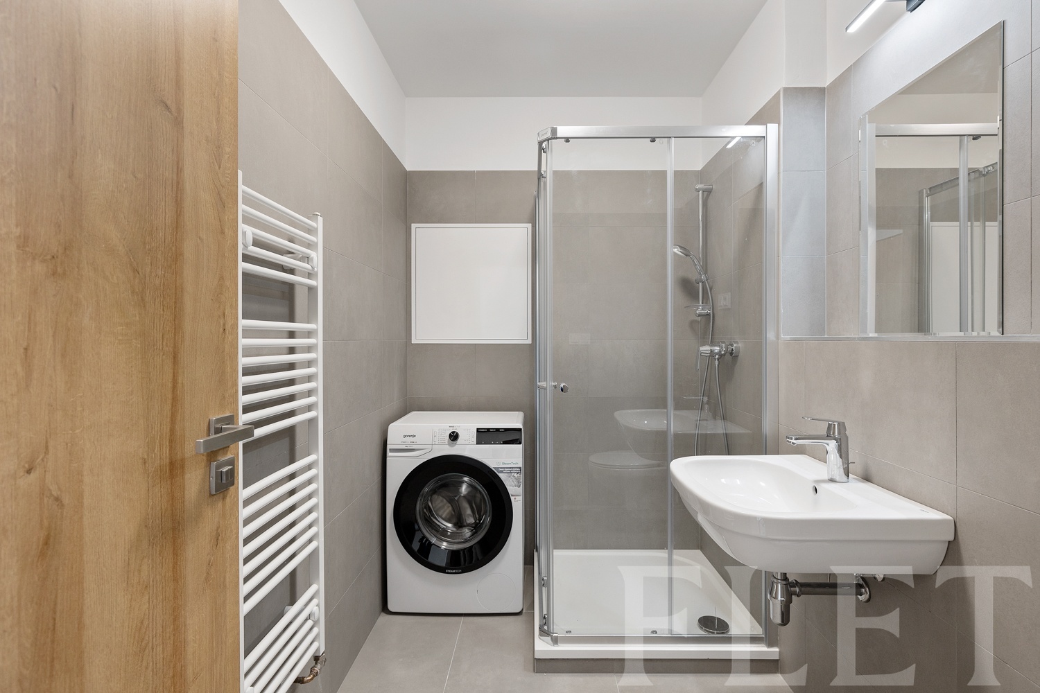 Kuchyně s obývací částí je díky velkému francouzskému oknu krásně prosvětlená, což prostoru dodává vzdušnost a příjemnou atmosféru po celý den. Moderní kuchyňská linka nabízí dostatek úložných prostor a poskytuje komfort pro každodenní vaření. V prostorné koupelně najdete sprchový kout, toaletu a pračku.