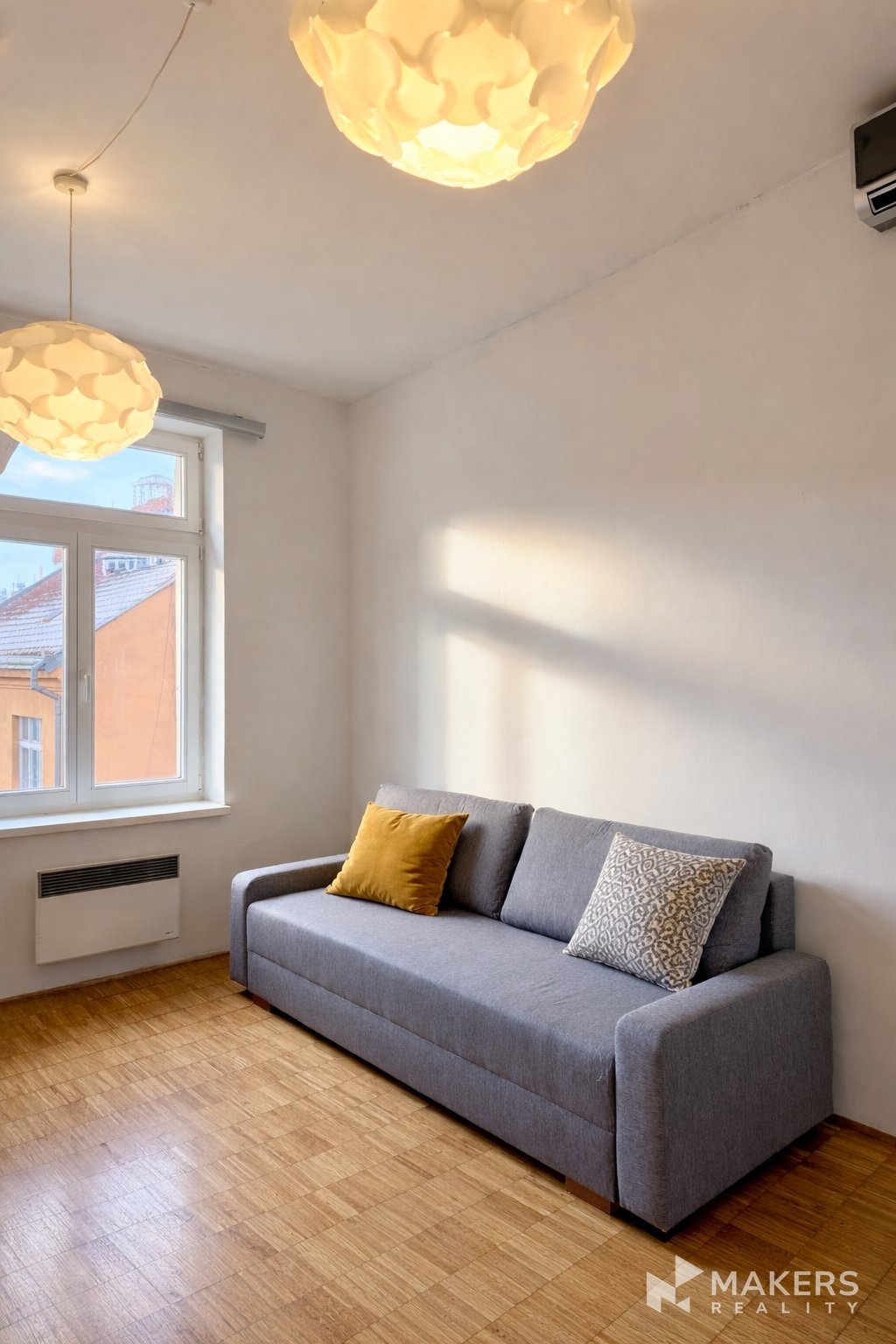 Nabízíme k dlouhodobému pronájmu světlý, plně zařízený byt 1+kk o velikosti 21 m², který se nachází v 5. patře (posledním patře) bytového domu. Okna bytu jsou orientovaná do vnitrobloku, což zajišťuje klidné bydlení bez hluku z ulice, a zároveň dostatek denního světla. Velkou výhodou je klimatizace, která zajišťuje komfortní prostředí i během horkých letních měsíců.