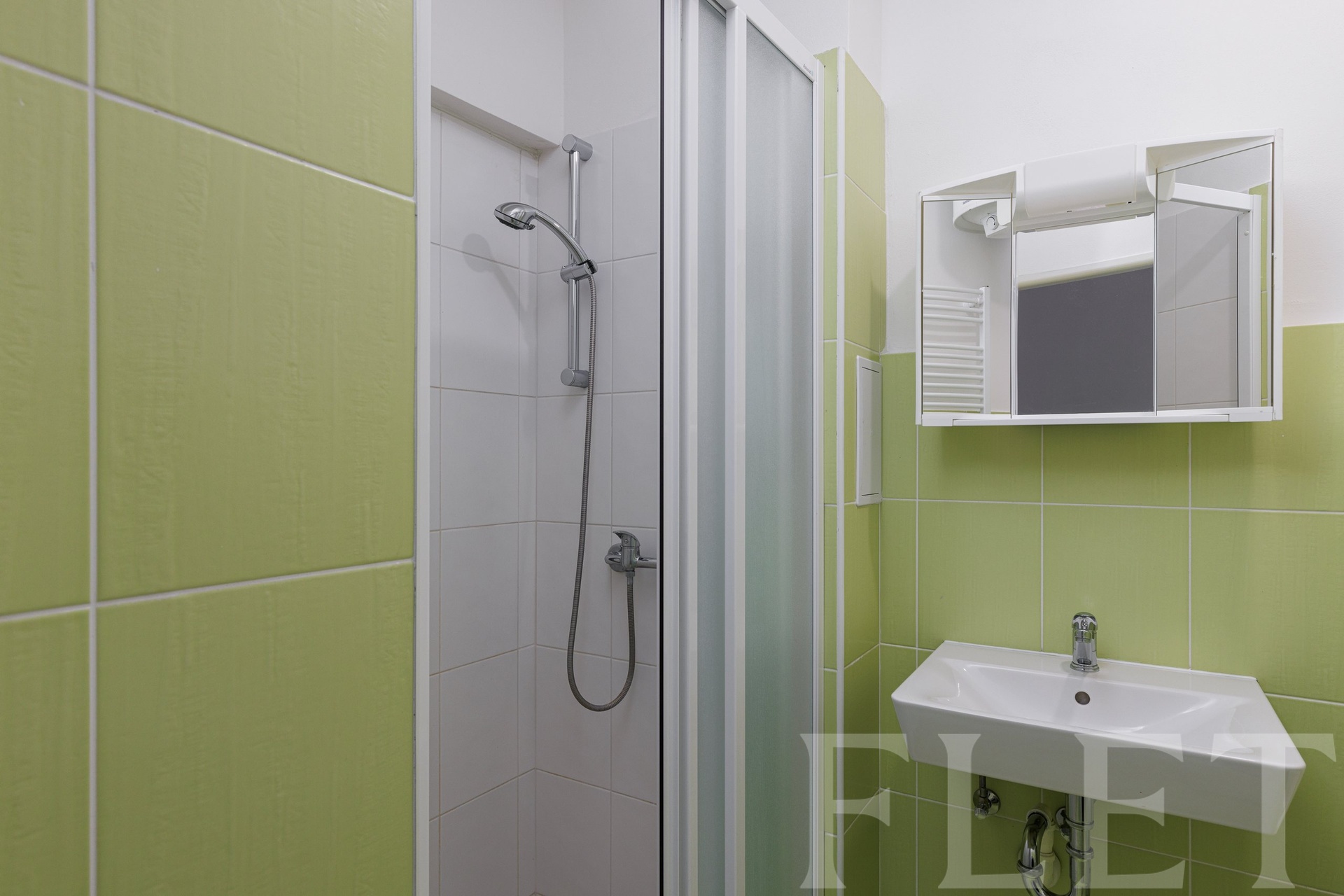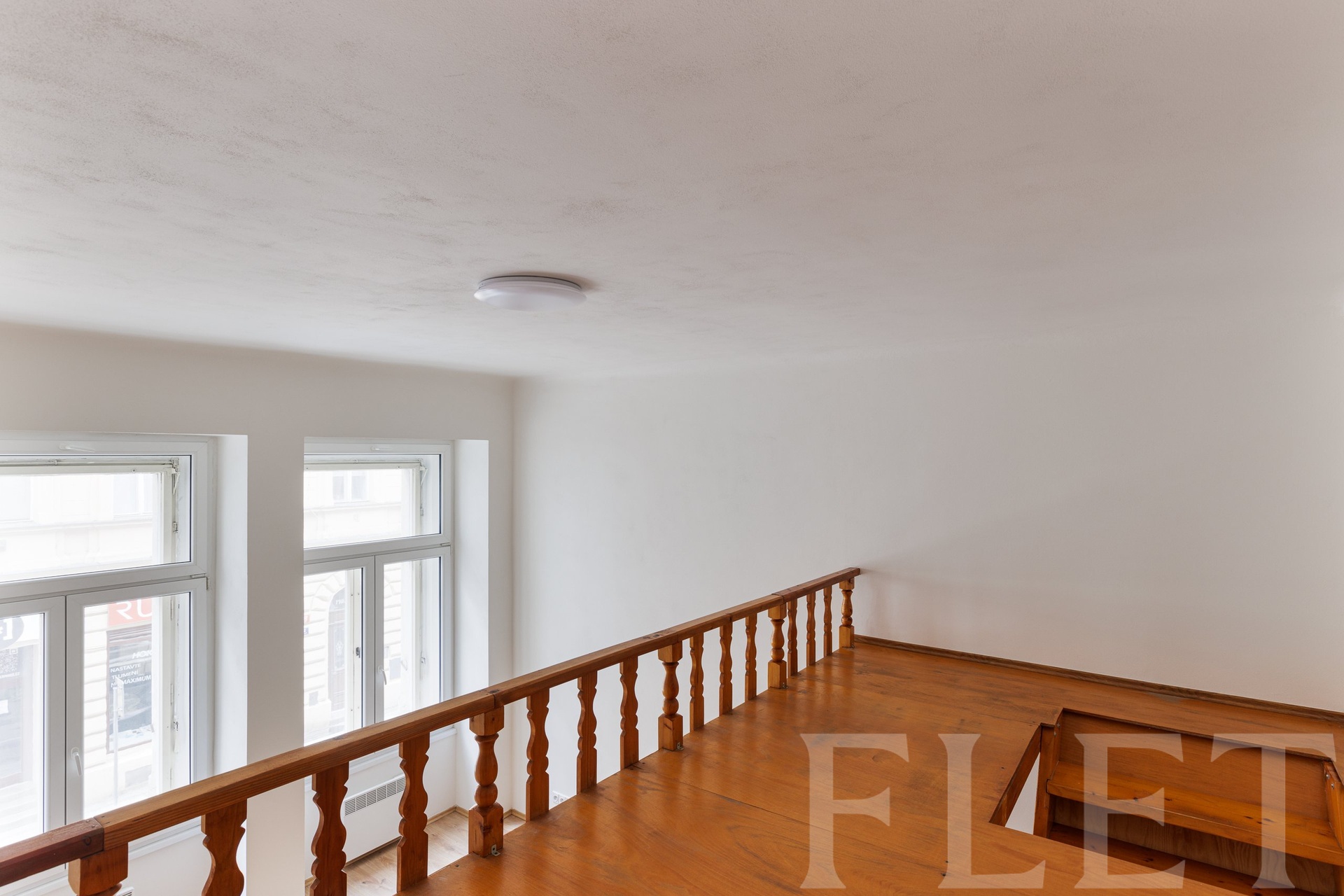 Byt se skládá z hlavní prostorné místnosti, kde je pro vás připraveno řemeslně zpracované vestavěné patro a je zde také dostatek prostoru pro gauč i pracovní stůl, a velké chodby s kuchyňským koutem. Tento kuchyňský prostor plynule navazuje na předsíň a je zařízen troubou se sporákem a také lednicí. V koupelně se sprchovým koutem a toaletou je k dispozici také pračka.