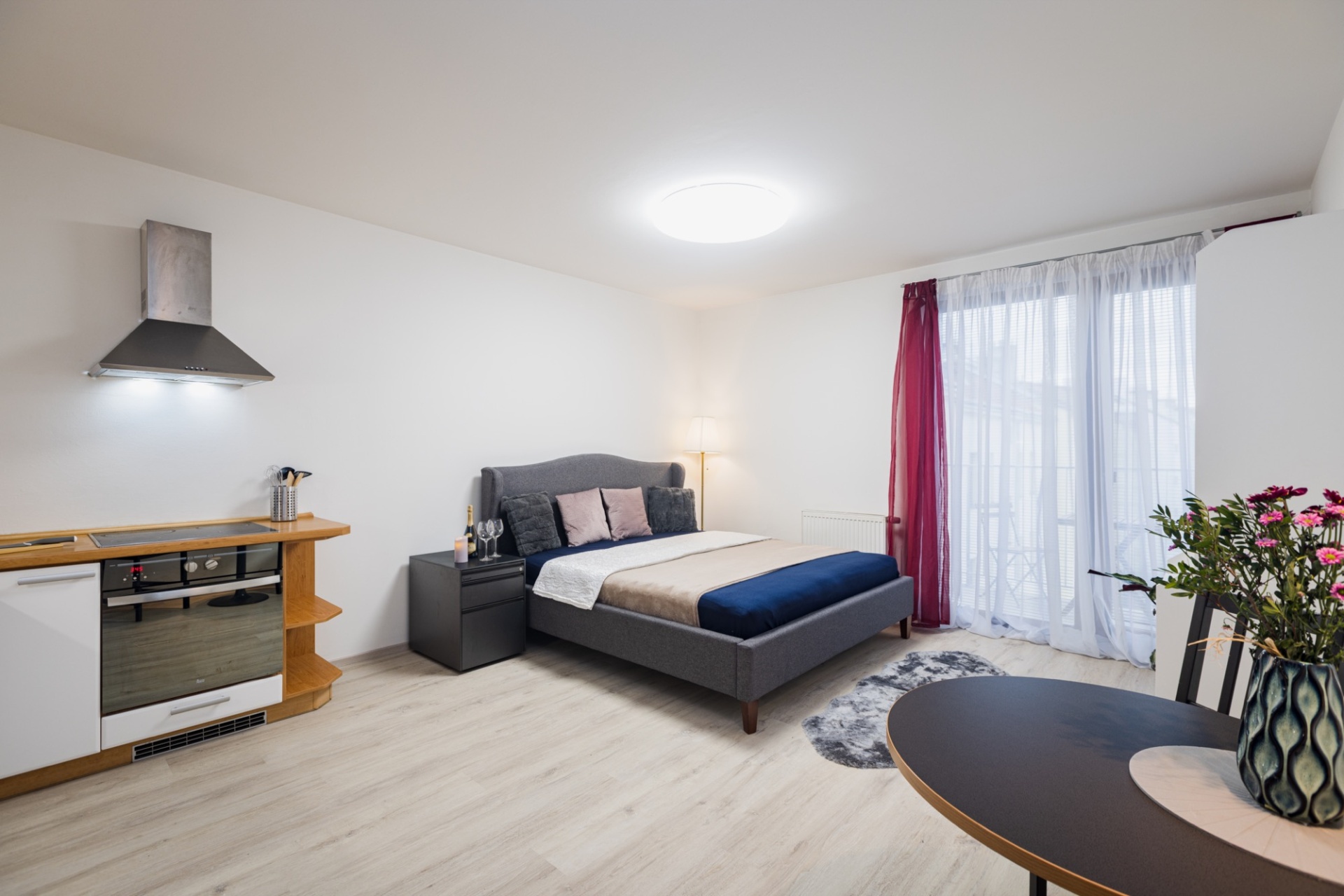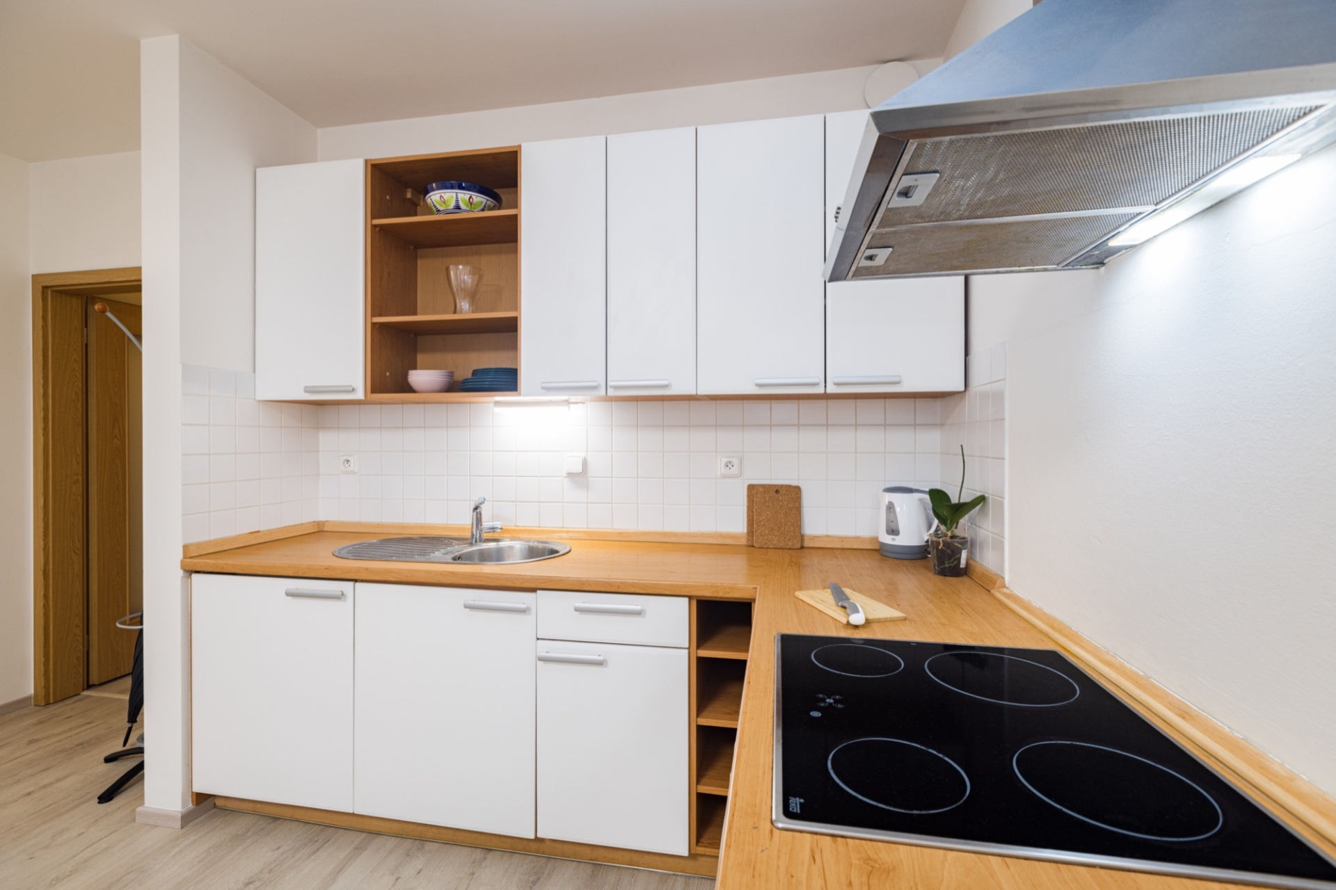 Byt je plně vybavený a připravený k užívání. Kuchyňská linka je vybavena troubou a sporákem. V obývací části se nachází postel s oddělenými matracemi, stůl a židle. V koupelně je k dispozici pračka. K bytu patří suchá světlá komora umístěná na patře blízko bytu ideální k uskladnění objemnějších věcí.