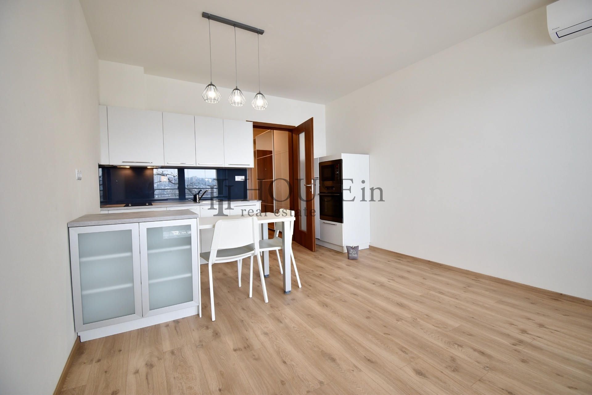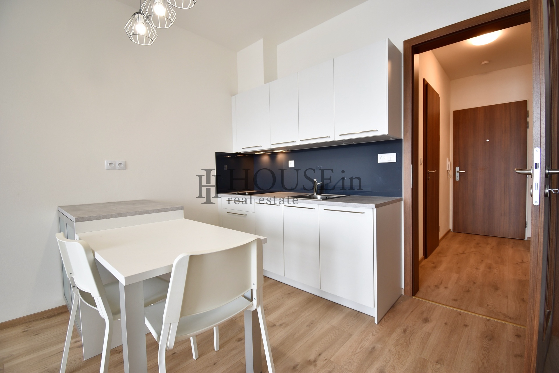 Nabízíme k dlouhodobému pronájmu částečně zařízený, klidný byt 1+kk s lodžií (6 m²), který se nachází ve 2. nadzemním podlaží novostavby v ulici Krnkova, Praha 4 – Michle. Byt se nachází v bezprostřední blízkosti obchodního centra s Kauflandem a sídla Pražské plynárenské, v oblasti s výbornou občanskou vybaveností a velmi dobrou dostupností do centra města.