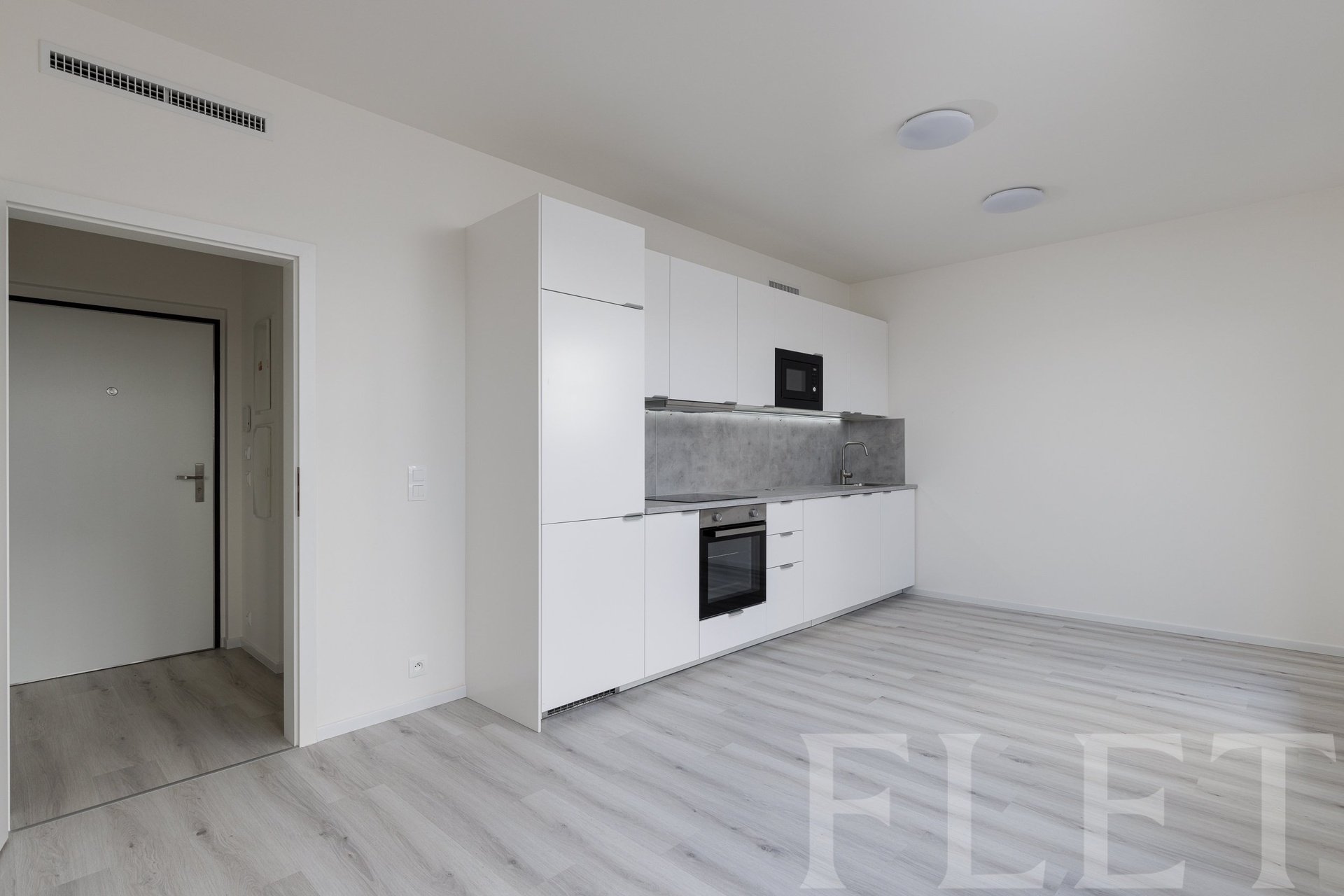 V pokoji je vám k dispozici vybavený kuchyňský kout (indukční deska, el. trouba, digestoř, lednice s mrazákem a vestavěná mikrovlnná trouba). Svou ranní kávu či večerní sklenku vína si budete moci vychutnat na terase s výhledem do nové okolní zástavby. V bytě jsou použity světlé odstíny barev, proto se meze vaší představivosti při jeho zařizování klást nebudou. Zároveň vás jistě potěší přítomnost rekuperace vzduchu. V koupelně se sprchovým koutem a toaletou je k dispozici také pračka. V předsíni je také velká vestavěná skříň, k bytu náleží sklep.