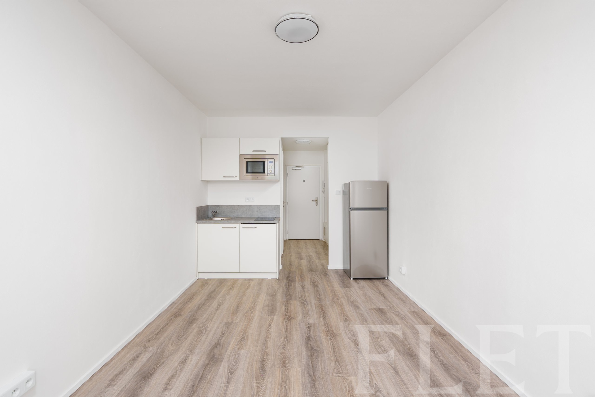 Při vstupu do bytu vás uvítá chodba s velkou vestavěnou šatní skříní, která zajistí dostatek úložného prostoru. Součástí světlého pokoje je moderní kuchyňský kout s lednicí, varnou deskou a zabudovanou mikrovlnnou troubou. V koupelně s toaletou najdete sprchový kout. Součástí pronájmu je také zmíněné parkovací stání v areálu budovy.