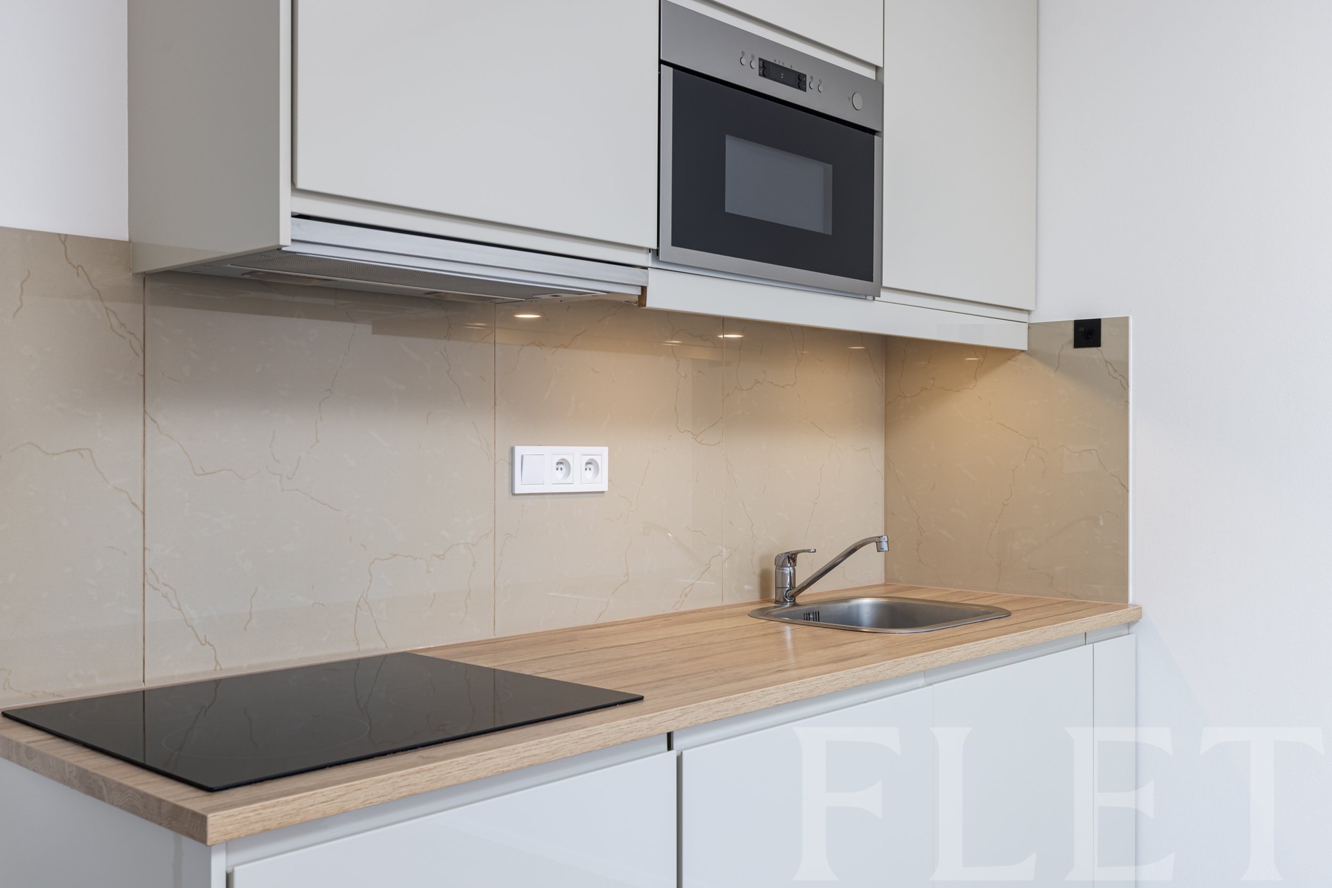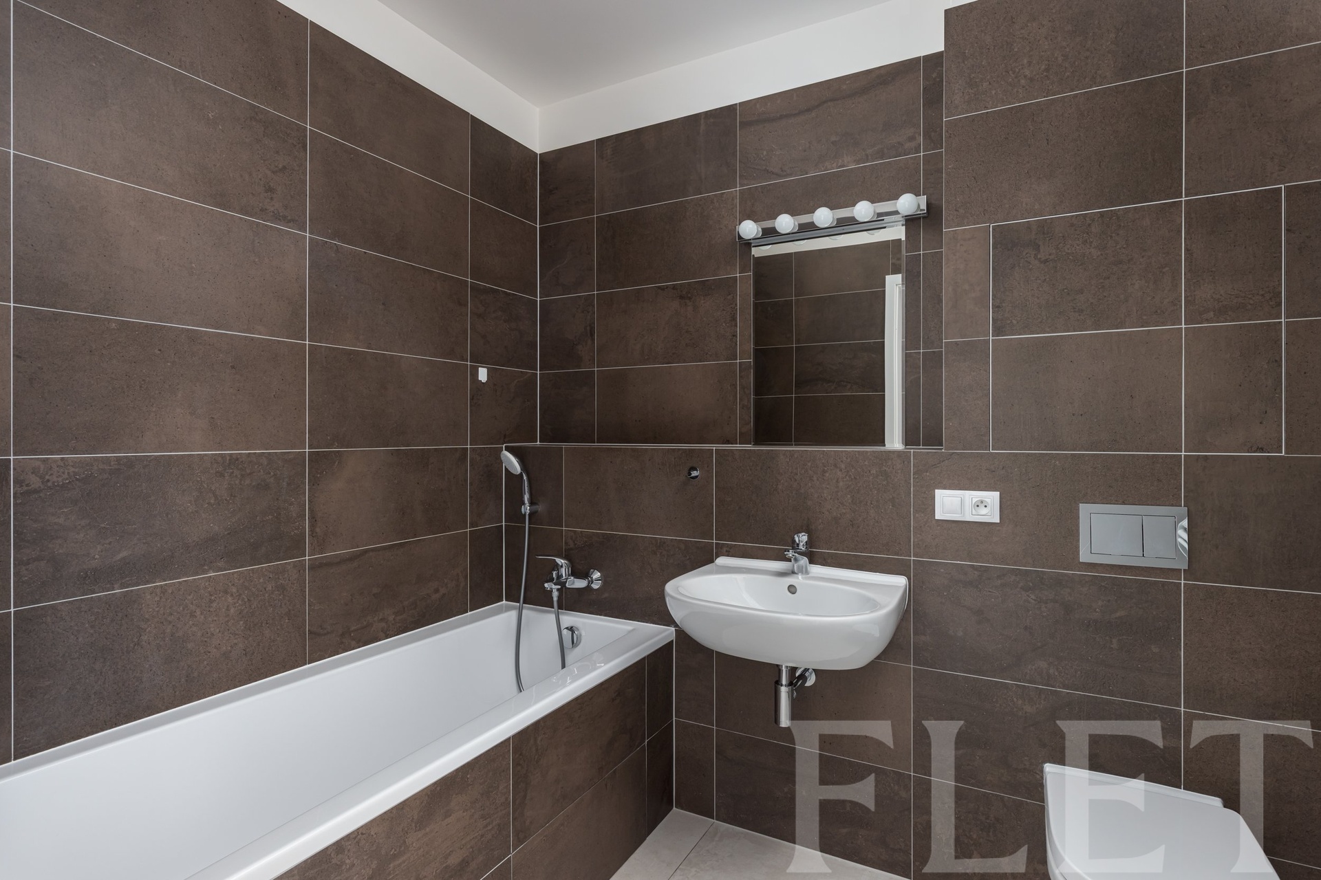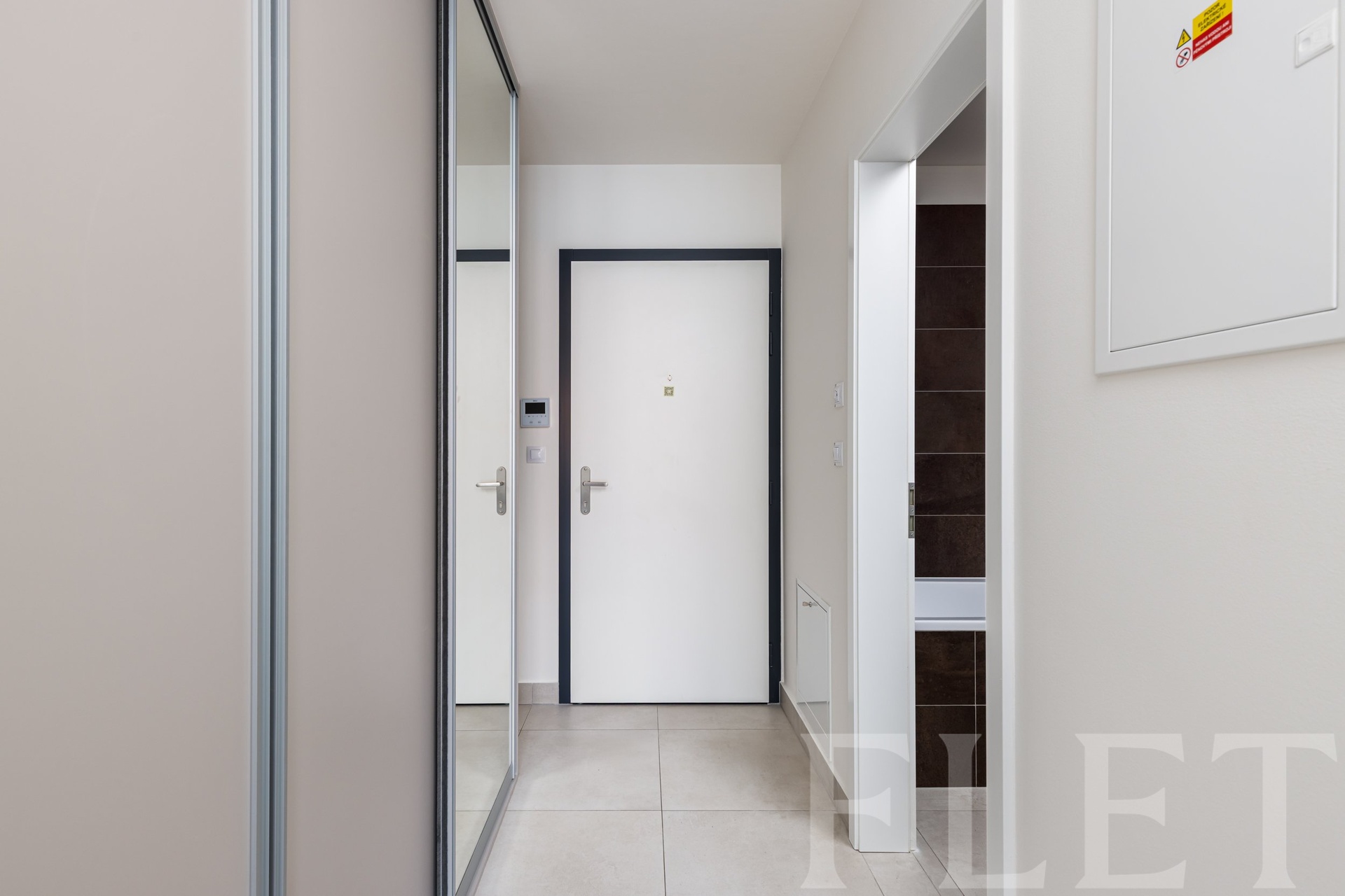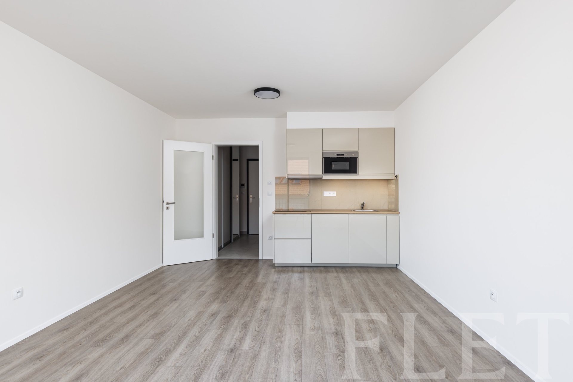 Interiér bytu působí vzdušně a elegantně. Prakticky řešený úložný prostor v předsíni přispívá k celkovému komfortu bydlení. Kuchyňský kout je vybaven kuchyňskou linkou se spotřebiči – lednicí s mrazákem, mikrovlnnou troubou a varnou deskou. V koupelně se nachází vana s toaletou, k dispozici je přípojka na pračku.