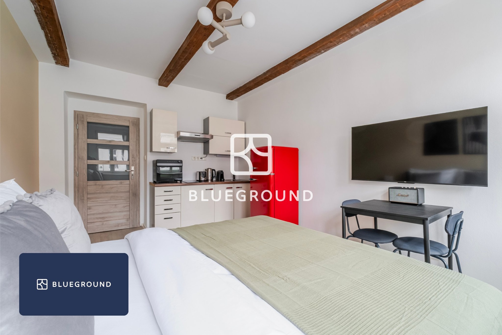 Blueground nabízí plně zařízené studio v Praze 3 – Žižkov, navržené s důrazem na pohodlí a praktičnost. Světlé studio o velikosti 28 m² disponuje plně vybavenou kuchyní a elegantním nábytkem, který spojuje moderní styl s kouzlem historické budovy. Je ideální pro studenty i profesionály a nabízí flexibilní pobyt od jednoho měsíce. Výborná lokalita zajišťuje snadnou dostupnost MHD i hlavních pražských památek — skvělé řešení pro krátkodobé i střednědobé pronájmy.