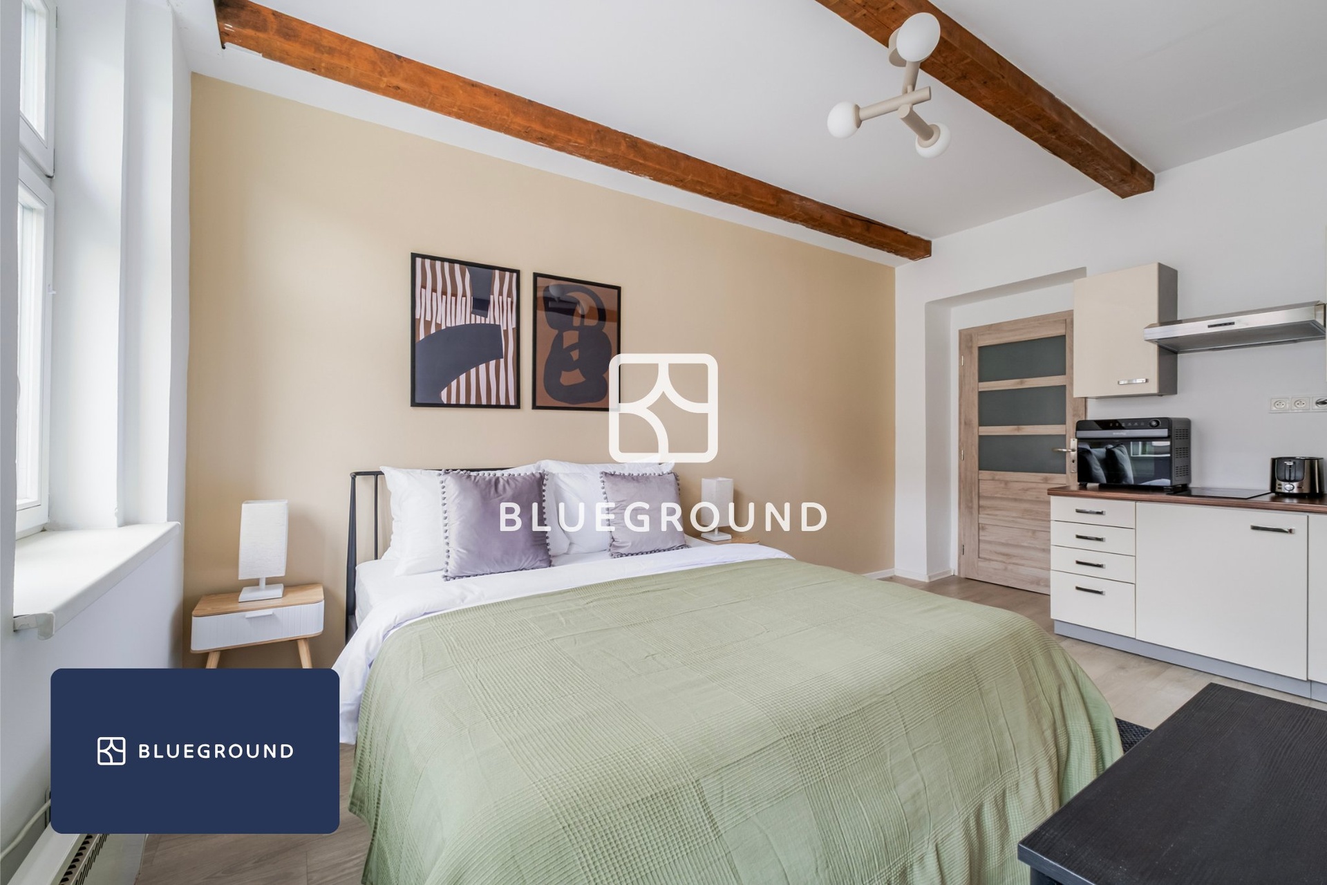 Blueground nabízí plně zařízené studio v Praze 3 – Žižkov, navržené s důrazem na pohodlí a praktičnost. Světlé studio o velikosti 28 m² disponuje plně vybavenou kuchyní a elegantním nábytkem, který spojuje moderní styl s kouzlem historické budovy. Je ideální pro studenty i profesionály a nabízí flexibilní pobyt od jednoho měsíce. Výborná lokalita zajišťuje snadnou dostupnost MHD i hlavních pražských památek — skvělé řešení pro krátkodobé i střednědobé pronájmy.