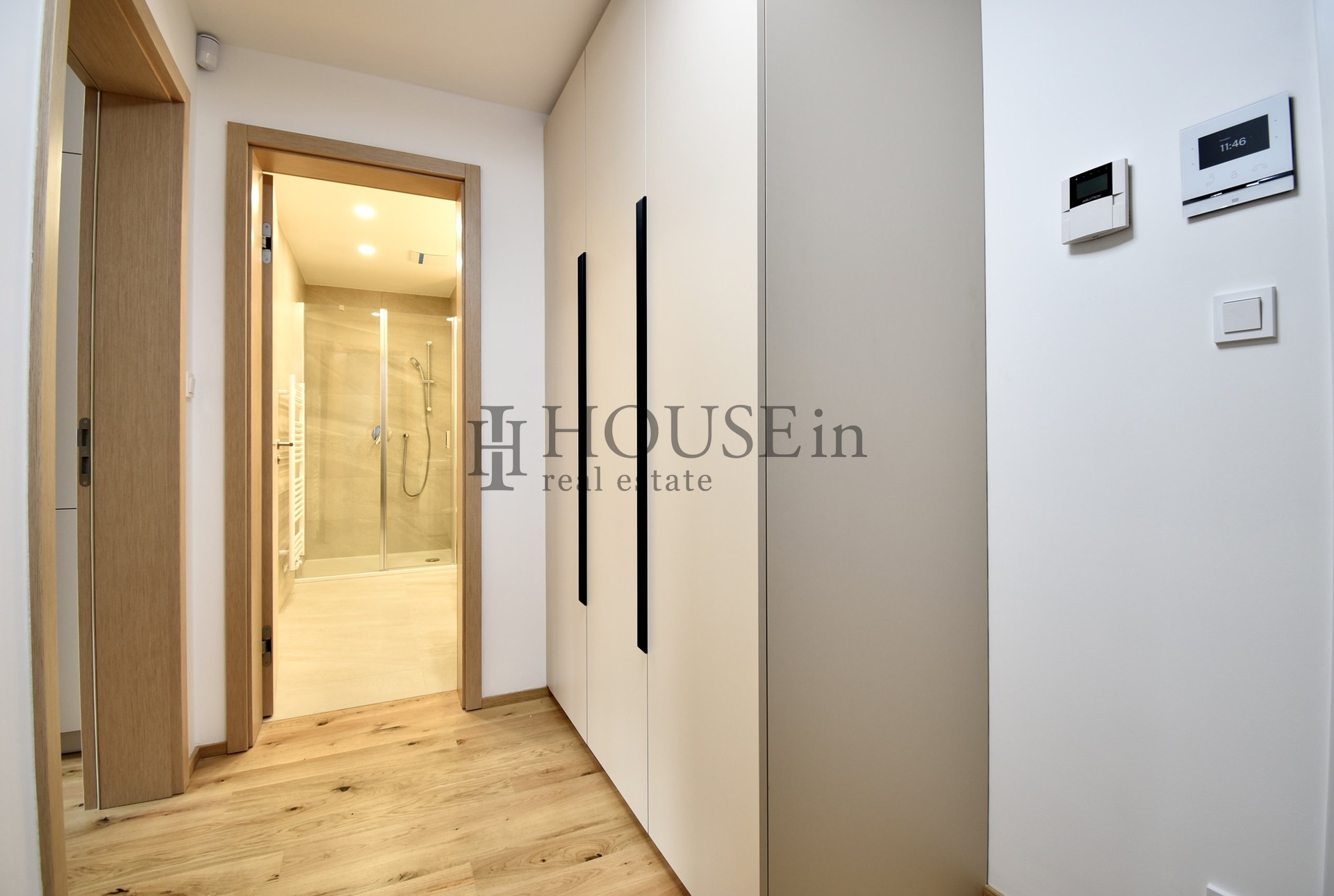 Byt je kompletně zařízený a připravený k okamžitému nastěhování. K dispozici je kuchyňská linka se spotřebiči, konkrétně elektrická trouba, mikrovlnná trouba, lednice s mrazákem, myčka a digestoř. Součástí vybavení je také moderní nábytek – dvoulůžková postel s matrací, psací stůl se židlí, konferenční stolek, dvě křesla, jídelní stůl se dvěma židlemi a vestavěné skříně v předsíni. Komfort bydlení zvyšuje podlahové vytápění v koupelně, předokenní žaluzie, alarm, videotelefon, optický internet, pračka a bezpečnostní skla v oknech.