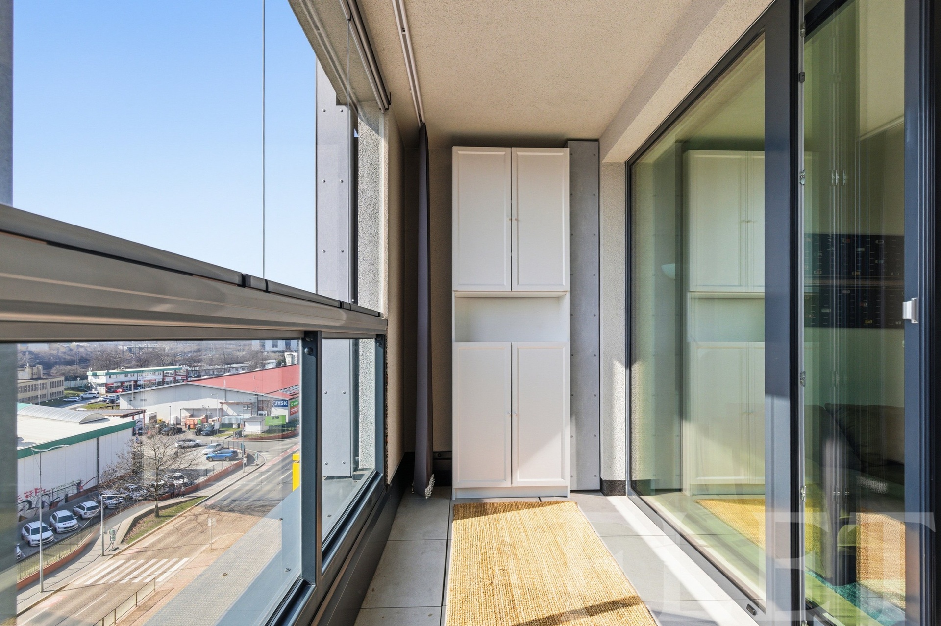 Interiér je zařízený a nabízí pohodlné zázemí pro každodenní život. Obývací část působí vzdušně a díky dostatku světla velmi příjemně, přičemž poskytuje prostor jak pro relaxaci, tak i práci z domova. Kuchyňský kout je vybaven lednicí s mrazákem, troubou a varnou deskou. V předsíni se nachází prostorná šatní skříň s dostatkem úložného prostoru. Koupelna je vybavena sprchovým koutem a pračkou. Velkým benefitem je lodžie o velikosti 6 m², ideální pro ranní kávu či večerní odpočinek, a také sklep o velikosti 4 m² pro uložení sezónních věcí.