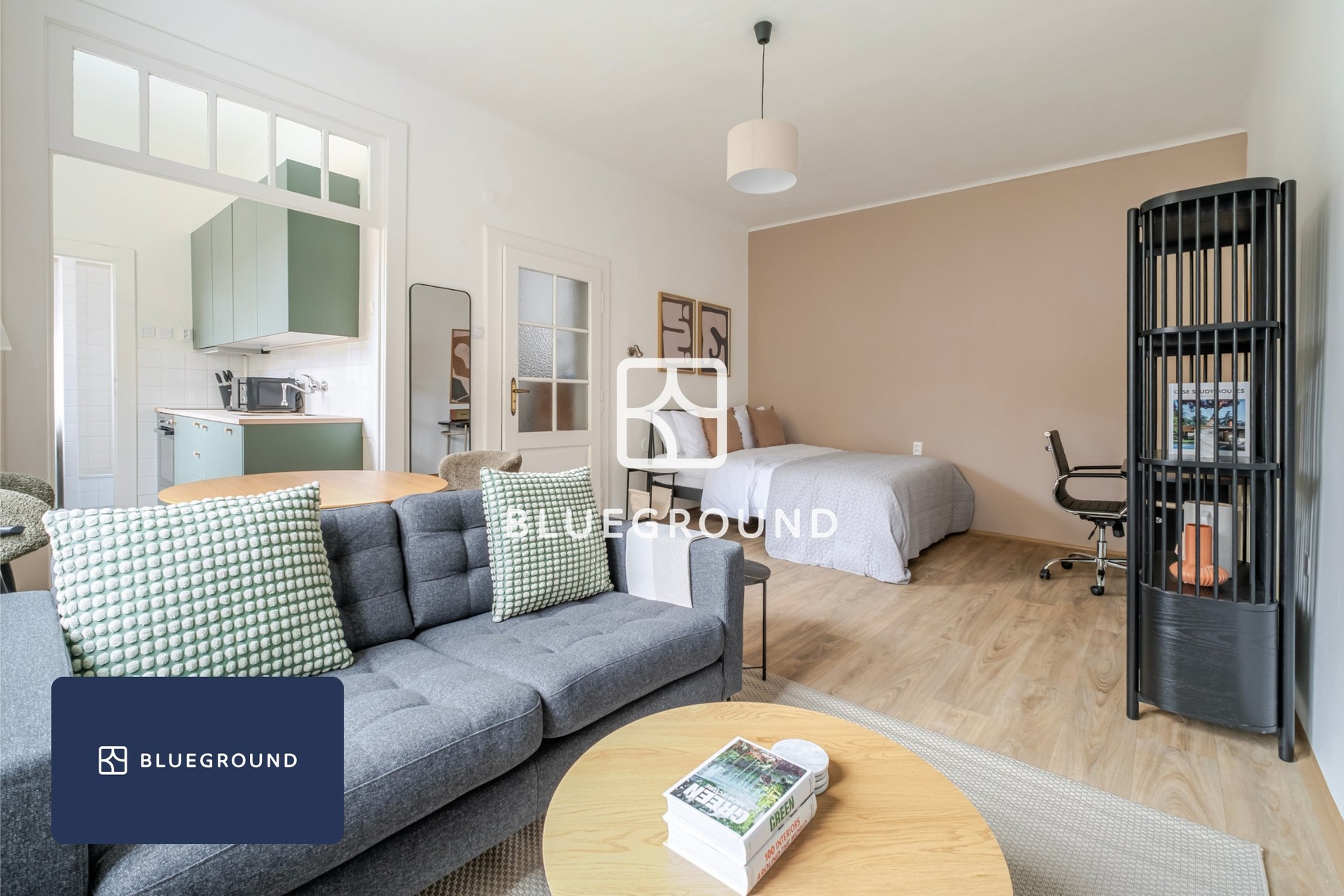 S Blueground se můžete nastěhovat do tohoto plně zařízeného bytu 1+kk (36 m²) s balkonem v Praze 5 – Anděl, a to již od jednoho měsíce. Nabízíme flexibilní střednědobé bydlení bez dlouhodobých závazků, kde je vše připraveno od prvního dne.