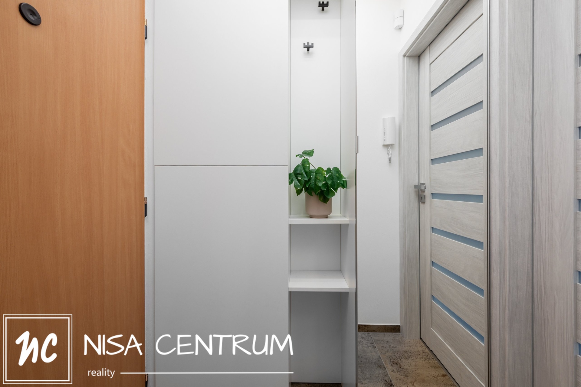 Vybaven je veškerým potřebným nábytkem, kuchyňskou linkou, pračkou, lednicí a i myčkou. Nachází se zde moderní koupelna s toaletou a sprchovým koutem. Součástí bytu je i sklepní kóje, která poskytuje dostatek úložného prostoru a také sdílený balkón na chodbě.