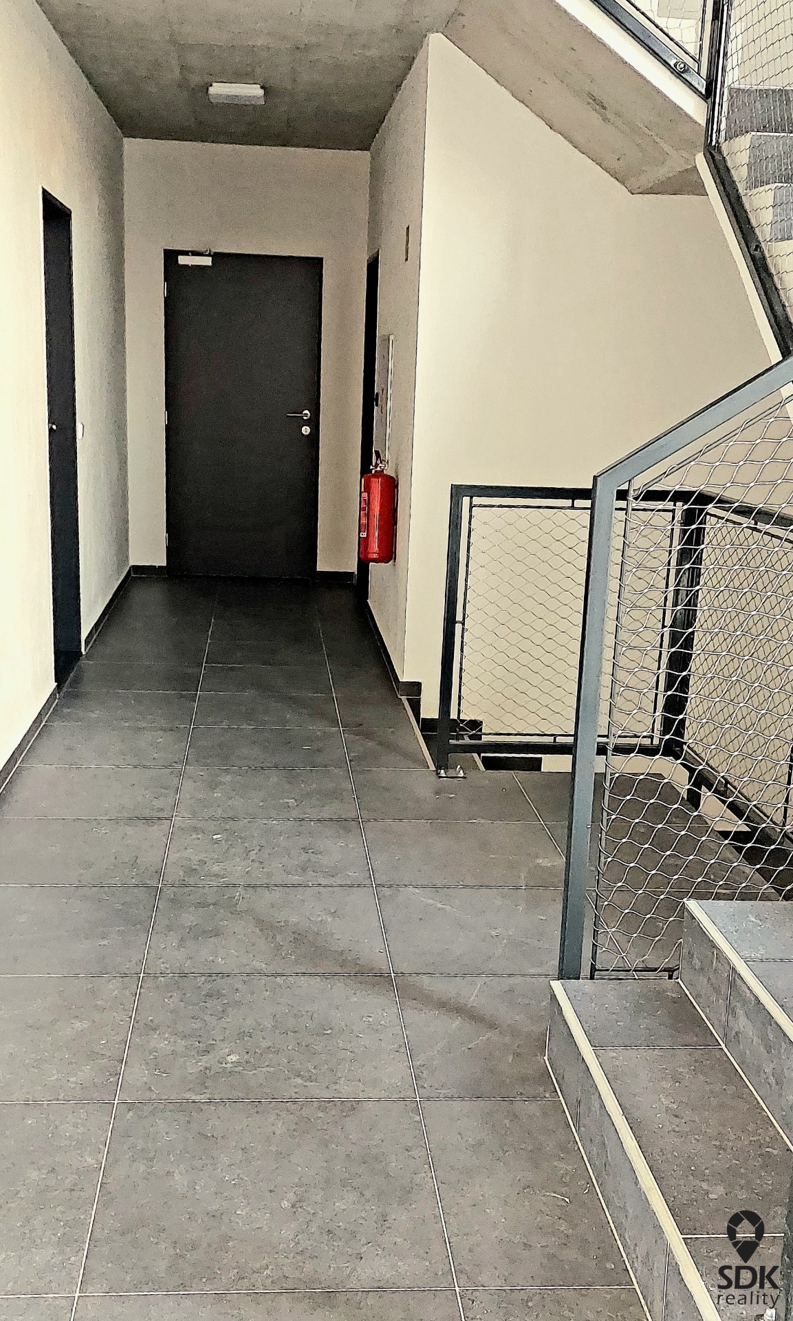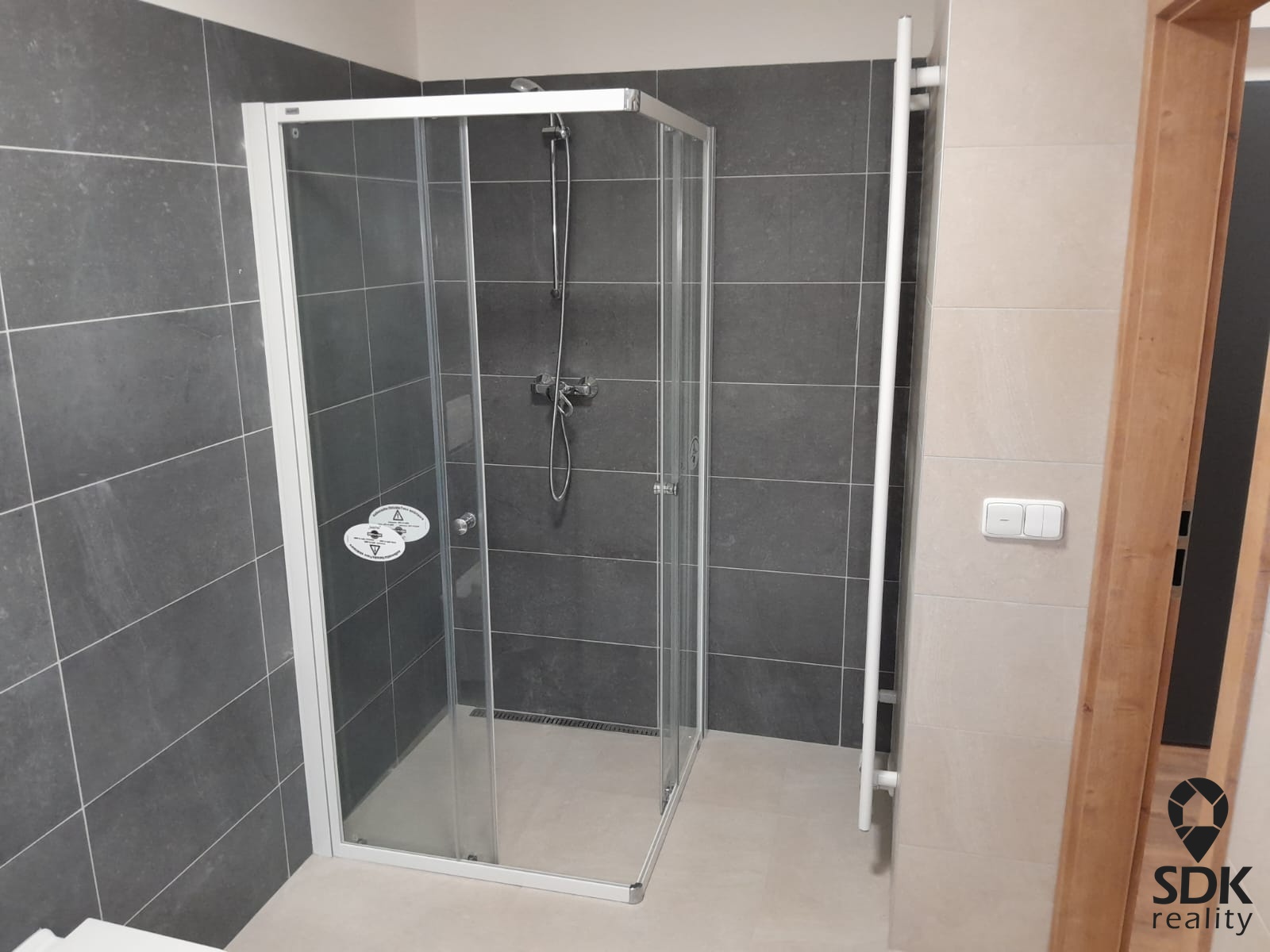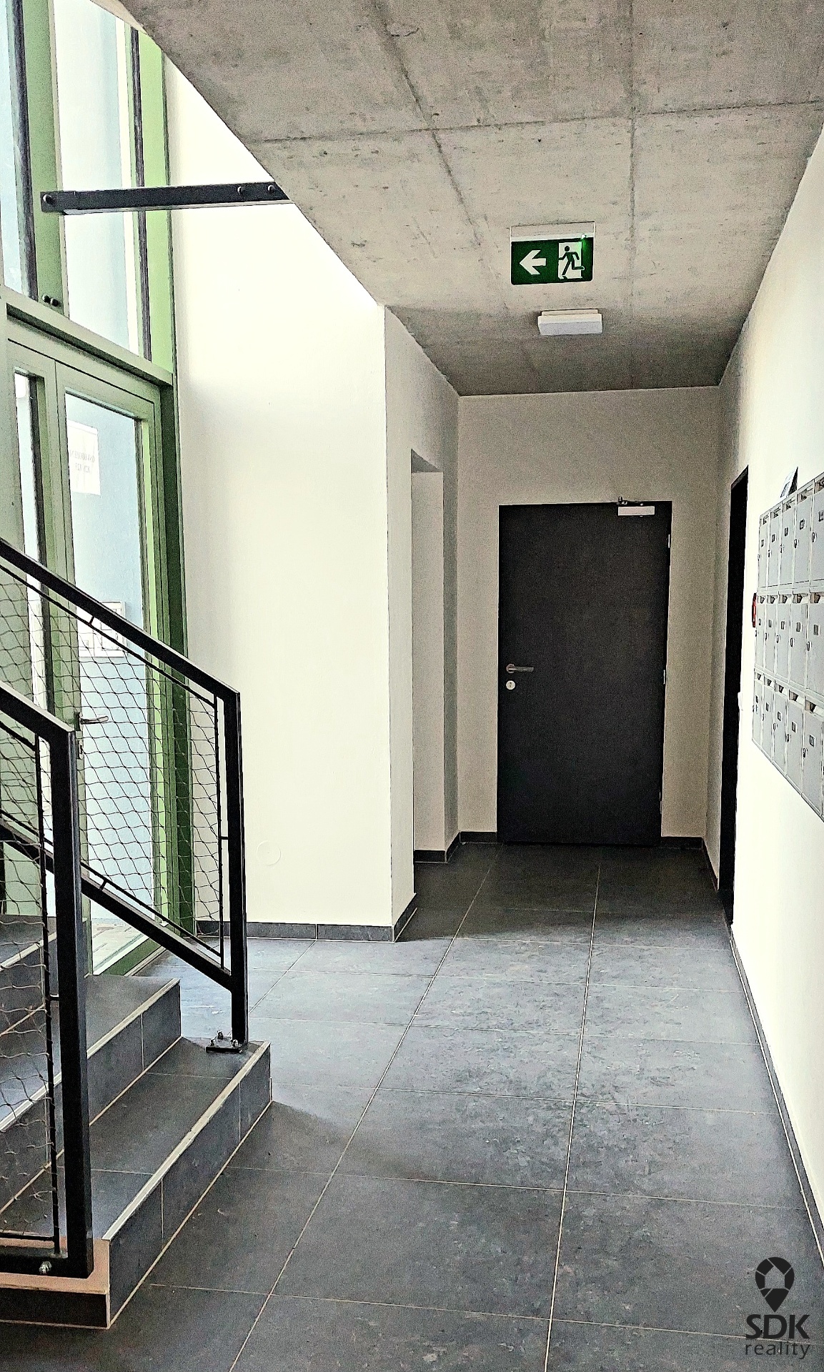 Nachází v 1. nadzemním podlaží bytovaného domu. Dispozičně je řešen prostornou vstupní chodbou, obývací části s kuchyňským koutem, šatnou, koupelnou se sprchovým koutem a toaletou. Je zde připraveno připojení na pračku.