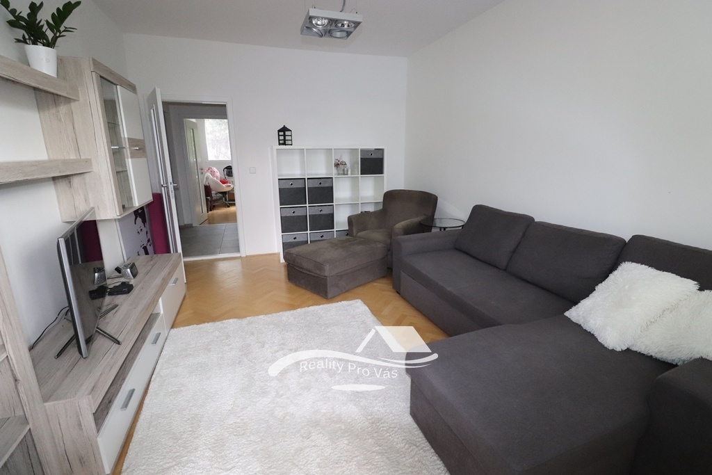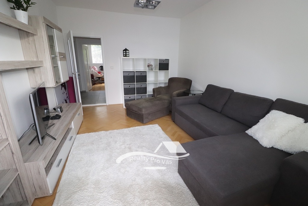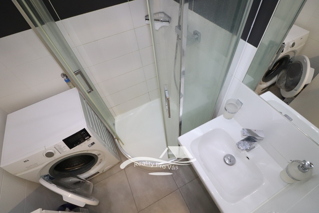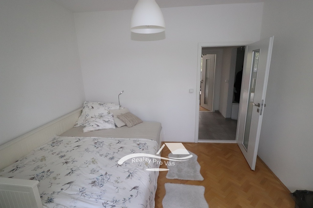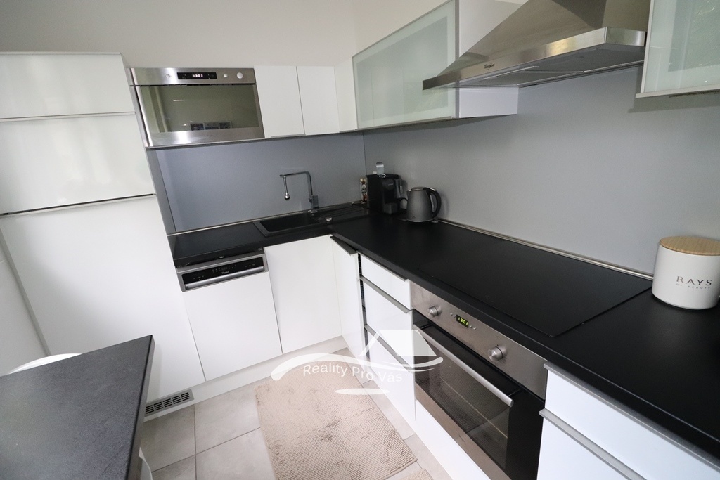 Byt prošel celkovou rekonstrukcí – nová kuchyňská linka včetně spotřebičů (myčka, sporák, mikrovlnka, digestoř), nová koupelna se sprchovým koutem WC je zvlášť, v bytě jsou nové podlahy (dlažba, parkety), vnitřní dveře, na chodbě a v komoře jsou nové vestavěné skříně.