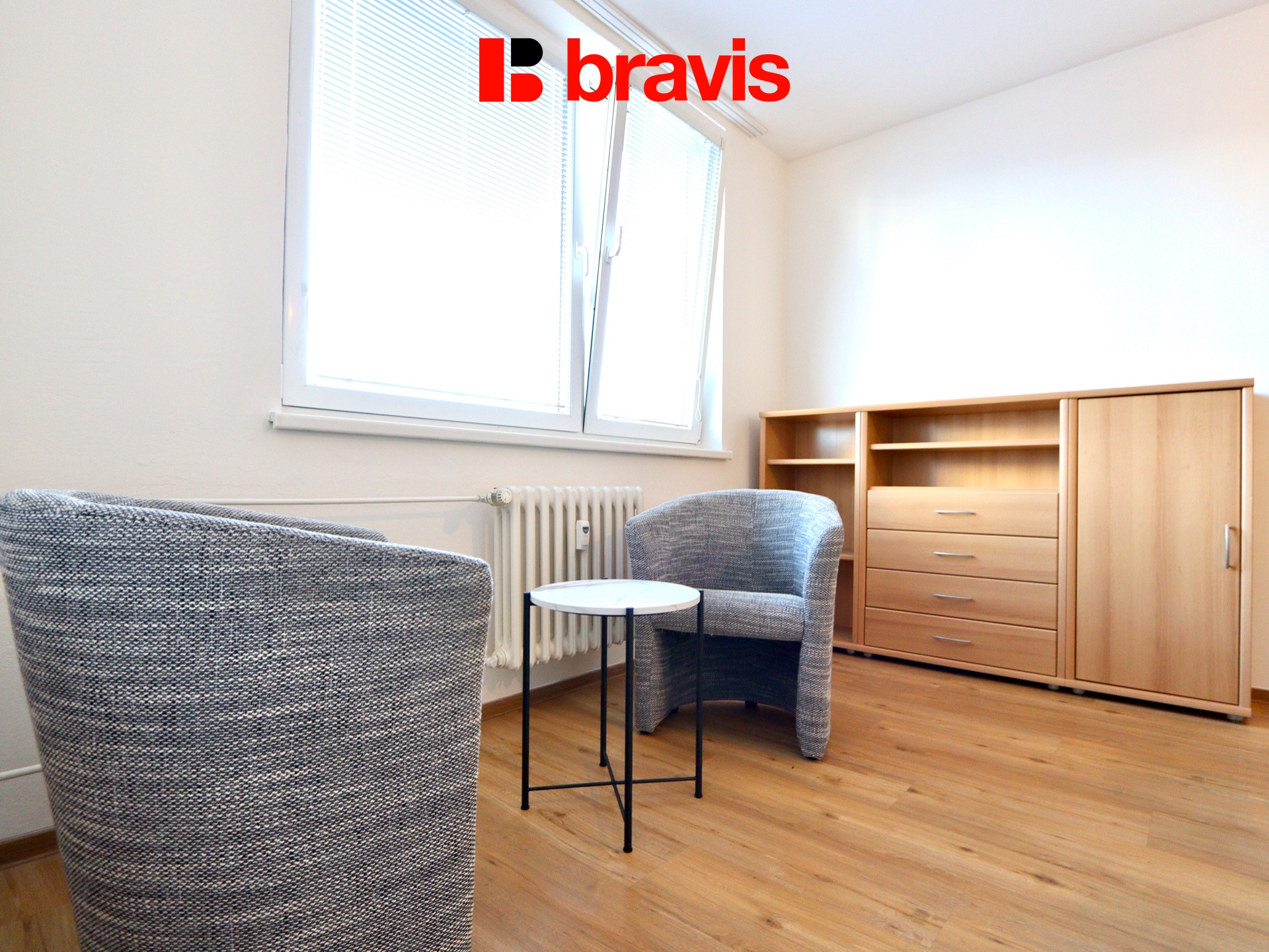 Byt o výměře 45 m2 se nachází ve 3. nadzemním podlaží bytového domu s výtahem. Součástí pronájmu je také sklepní kóje.