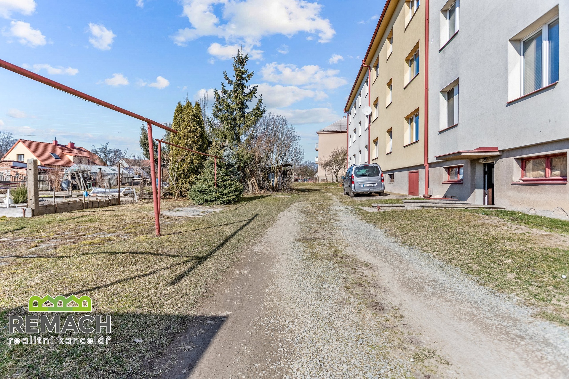 Tento byt nabízí pohodlné bydlení s možností relaxace na pozemku za domem.