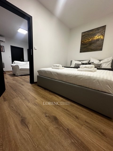 Byt o užitné ploše 44 m² se nachází v panelové budově ve 4 podlaží a disponuje krásným výhledem na Hodonín. K bytu patří sklep, který je v ceně nájmu. Byt se skládá z chodby, šatny, koupelny, obývák, kuchyně a ložnice. Byt je vybaven kuchyňskou linku s kompletními spotřebiči (lednice, mraznička pečící trouba, indukční deska, digestoř, pračka). V bytě je klimatizace a žaluzie. V bytě je v tento moment vybavena ložnice, koupelna a kuchyň. Obývací pokoj není vybaven.