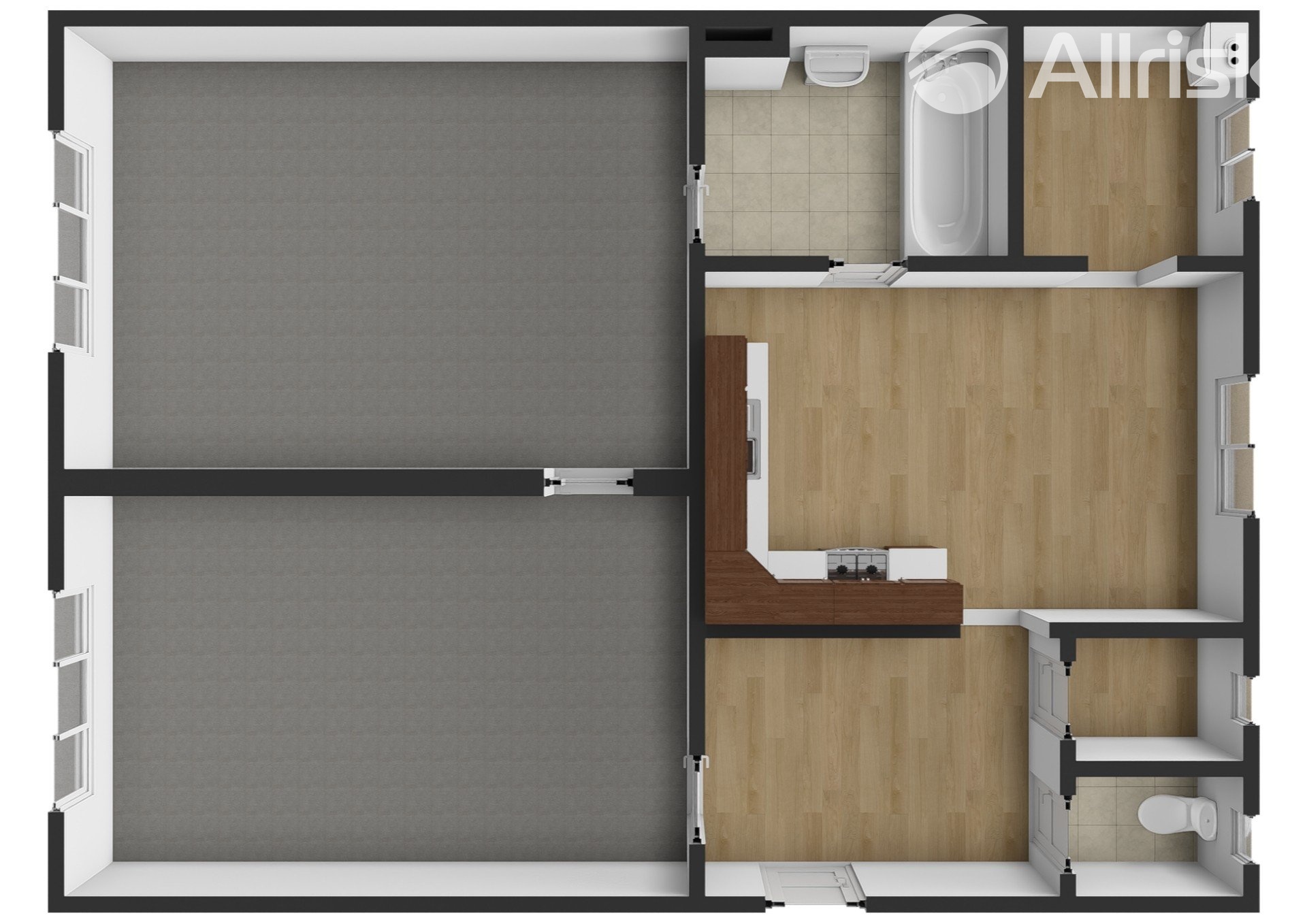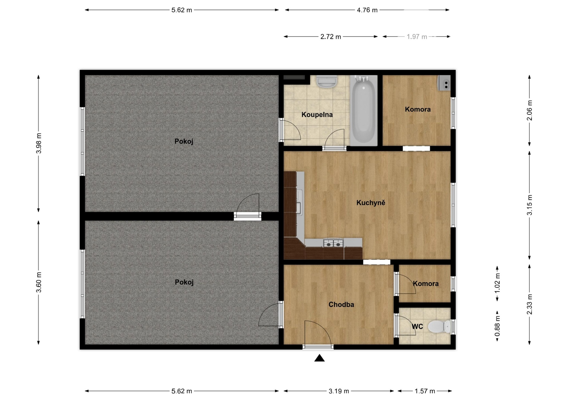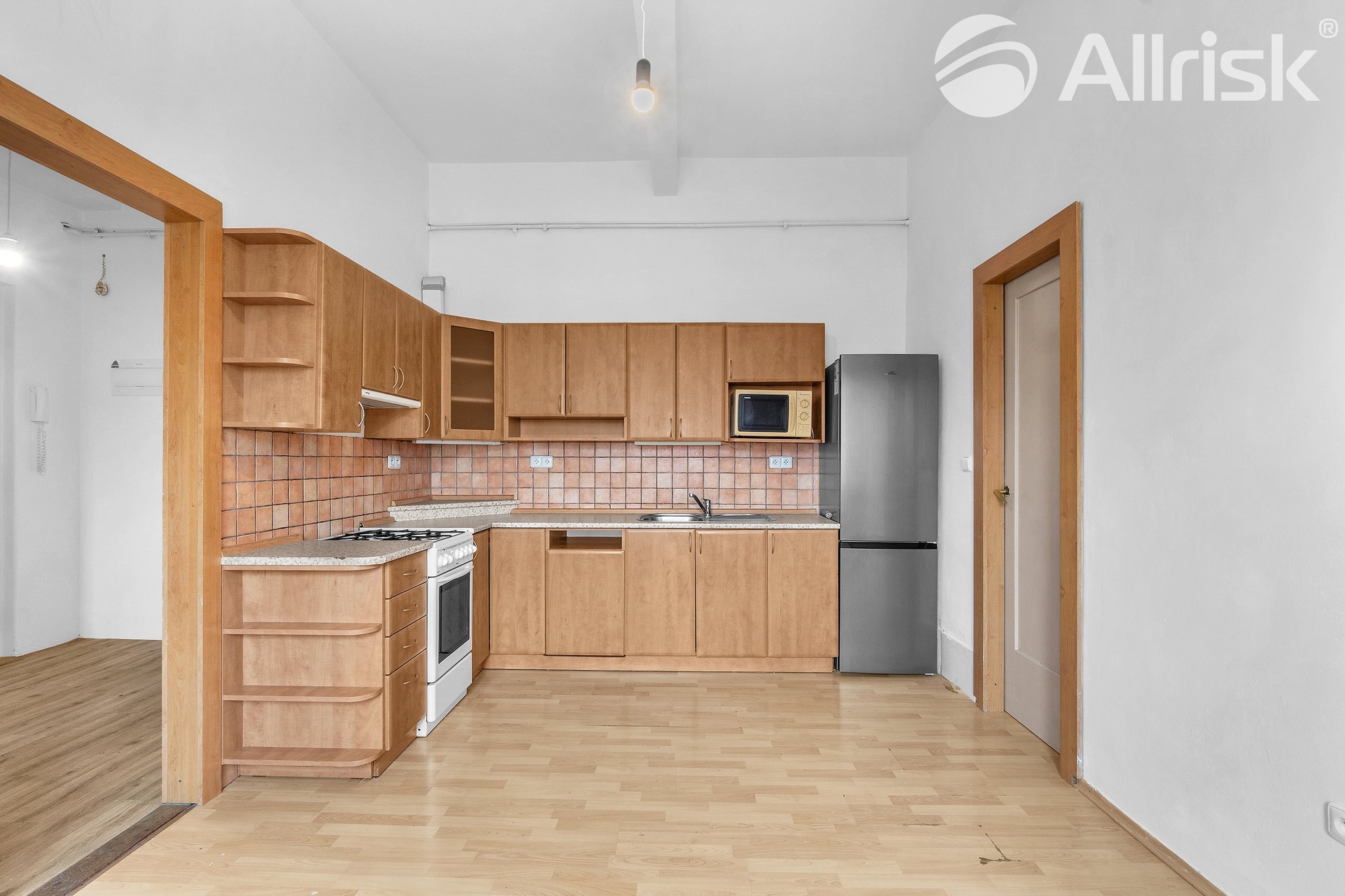 Byt se nachází ve 4. patře, v domě není výtah (není tedy bezbariérový). Součástí je i sklepní kóje, komora a špajz v bytě.