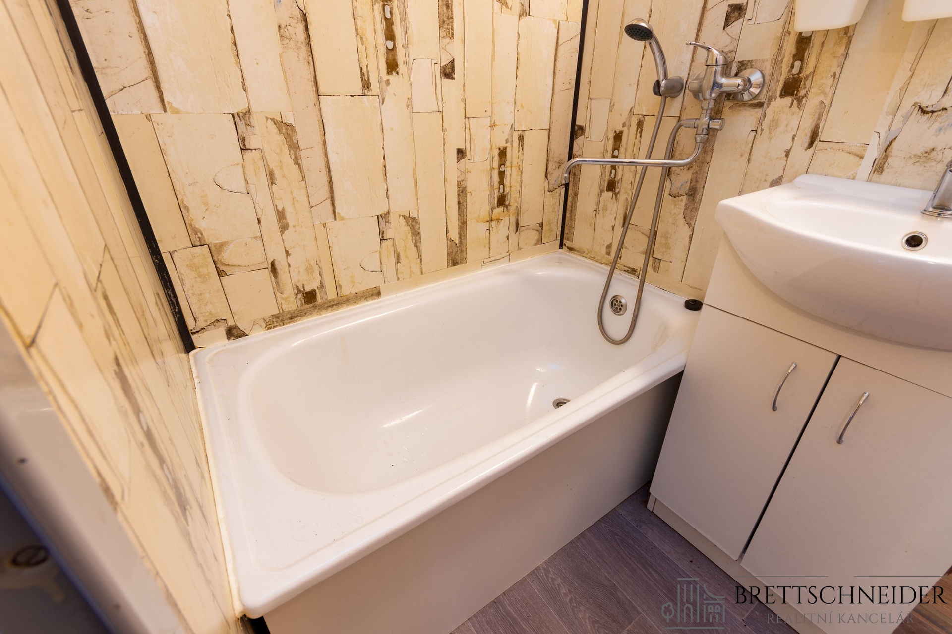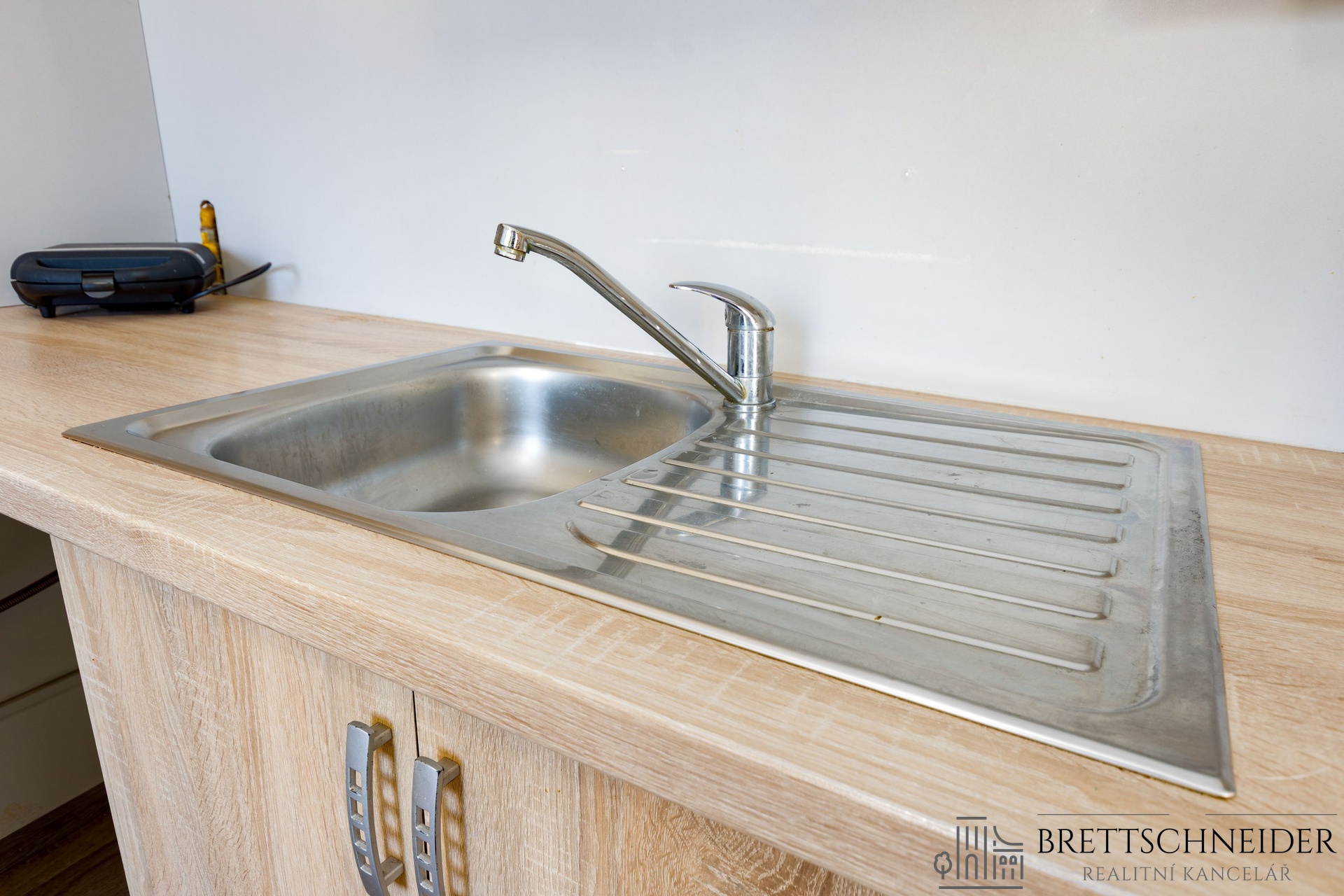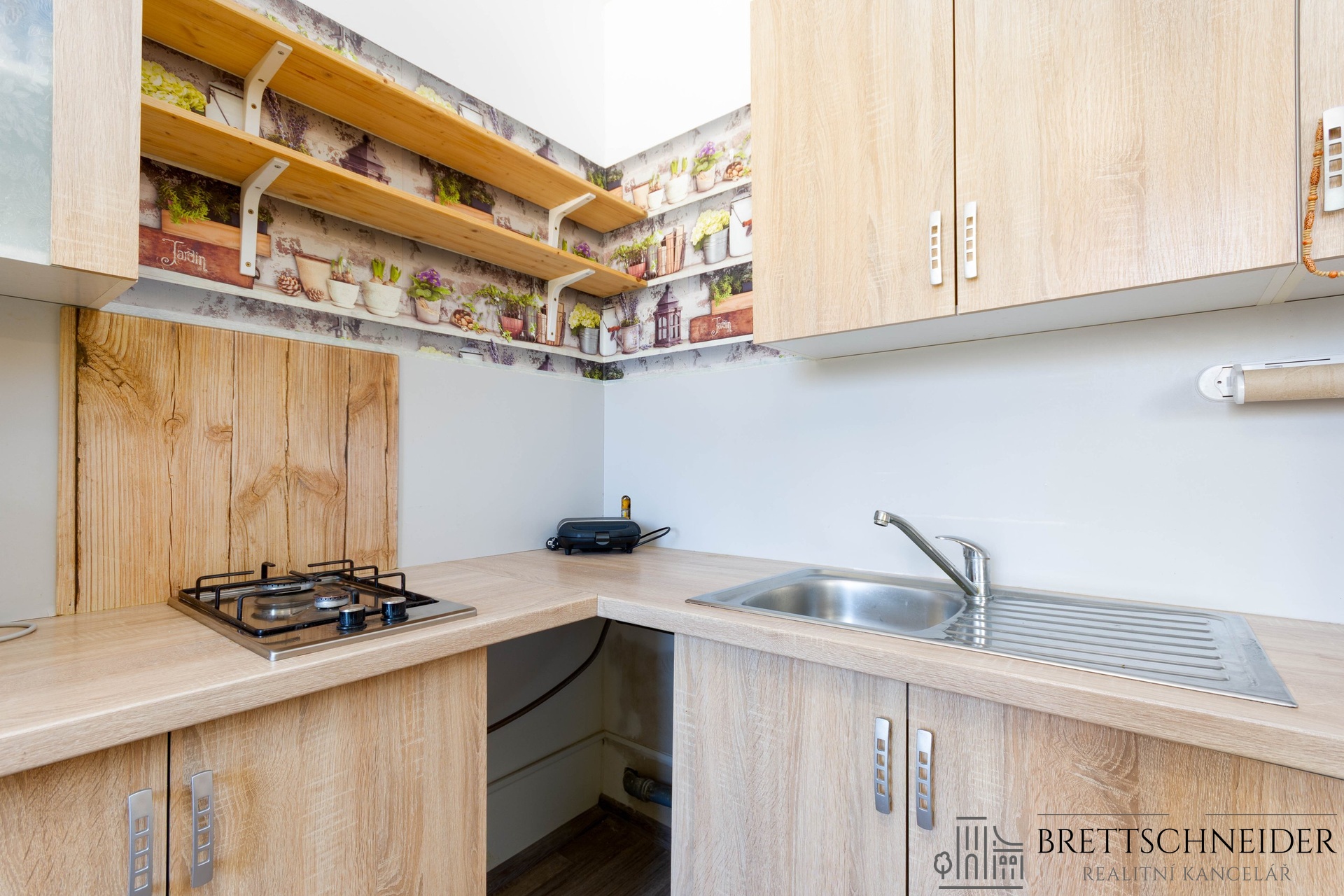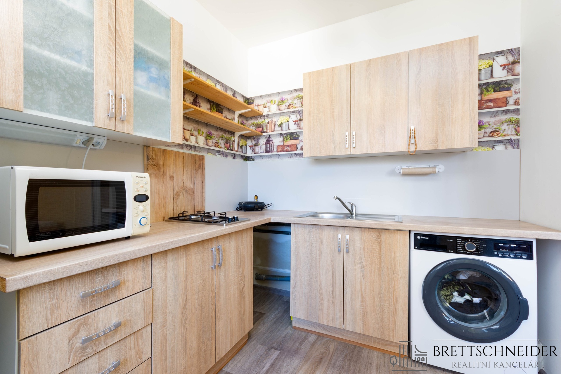 Byt bude budoucímu nájemci předán vyklizen bez nábytku, ze zařízení zůstává pouze vybavení kuchyně (kuchyňská linka s příslušenstvím, lednice s mrazákem, plynová varná deska, pračka, stolek) a předsíně (skříně). Fotografie bez nábytku jsou upraveny digitálně.