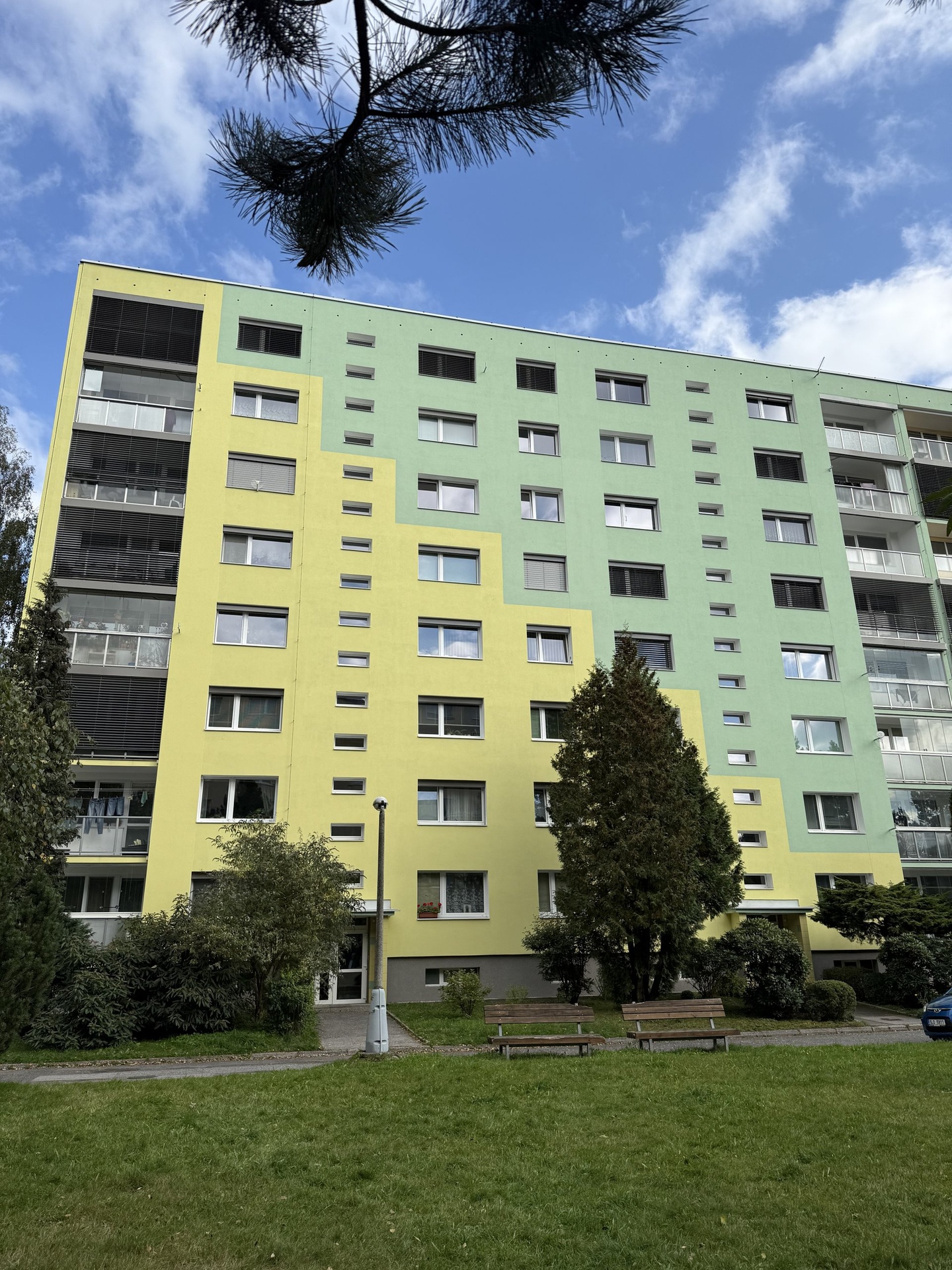 Byt se nachází v 5.NP o výměře 56m 2 (včetně sklepu 2 m2) a novým výtahem.