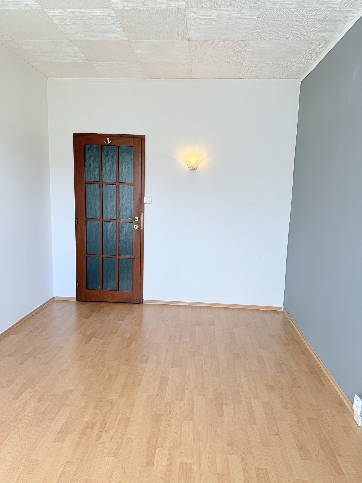 Obývací pokoj a druhý pokoj mají plovoucí podlahy, dřevěné dveře s obložkami.