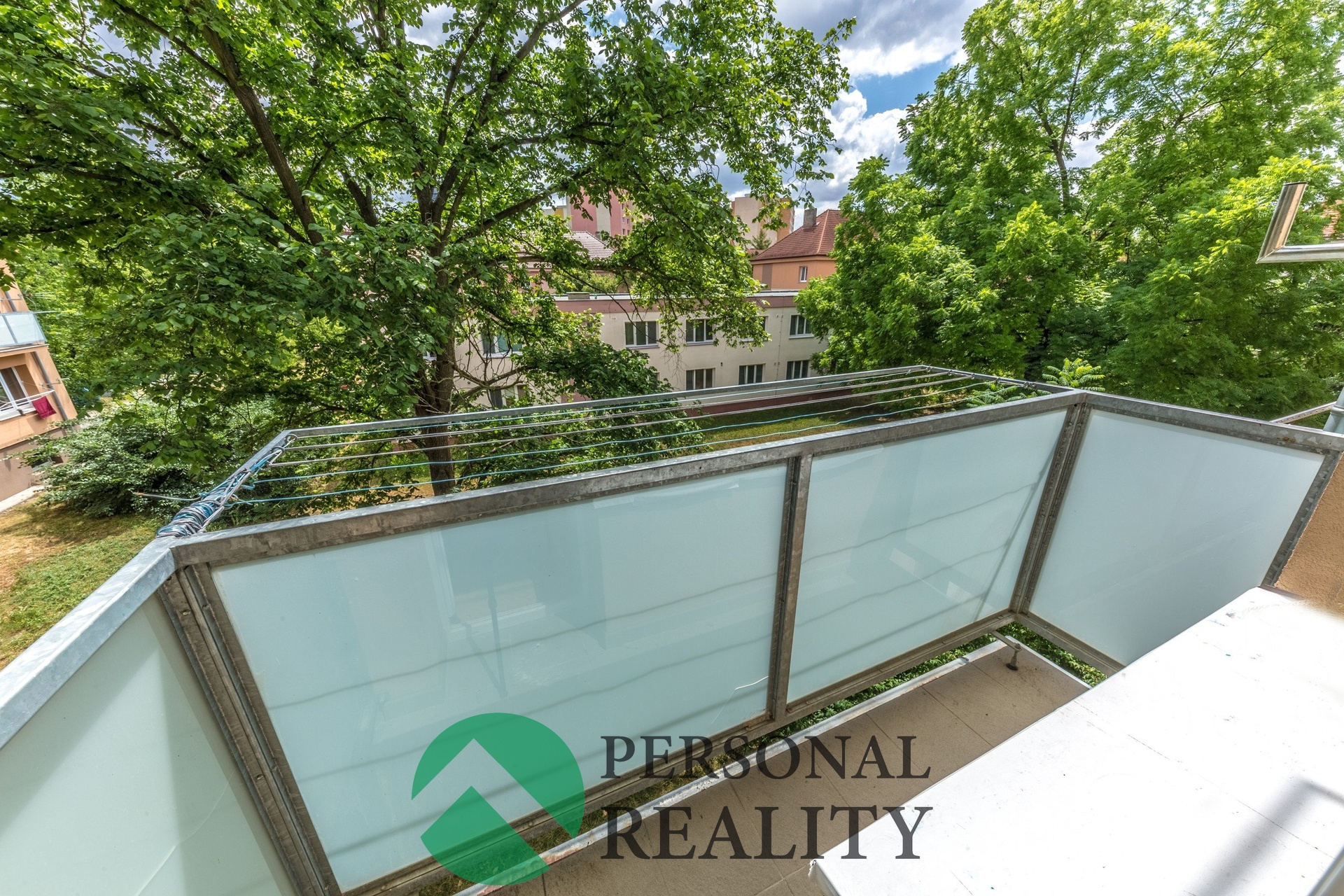 - obývací pokoj s balkónem a výhledem do zeleně do vnitrobloku s okny směrovanými na východ