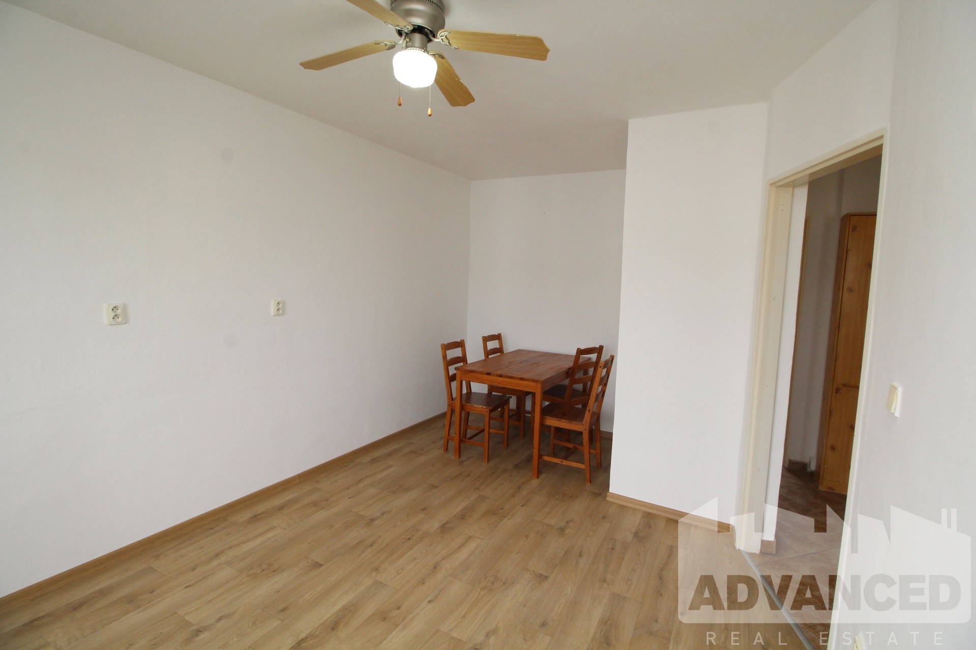V bytě se nachází vstupní hala, obývací pokoj s balkonem (na balkoně je síť proti holubům) s jídelním stolem, 4 židlemi a sedačkou, zařízená kuchyně s troubou, sklokeramickou deskou, lednicí s mrazákem a pračkou, ložnice s dvoupostelí (bez matrací) a 2 skříněmi, koupelna se sprchovým koutem a samostatné WC.
