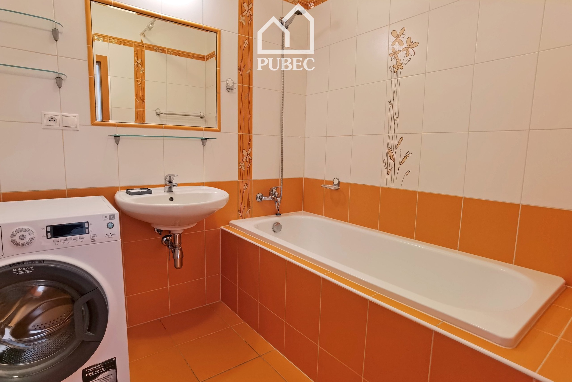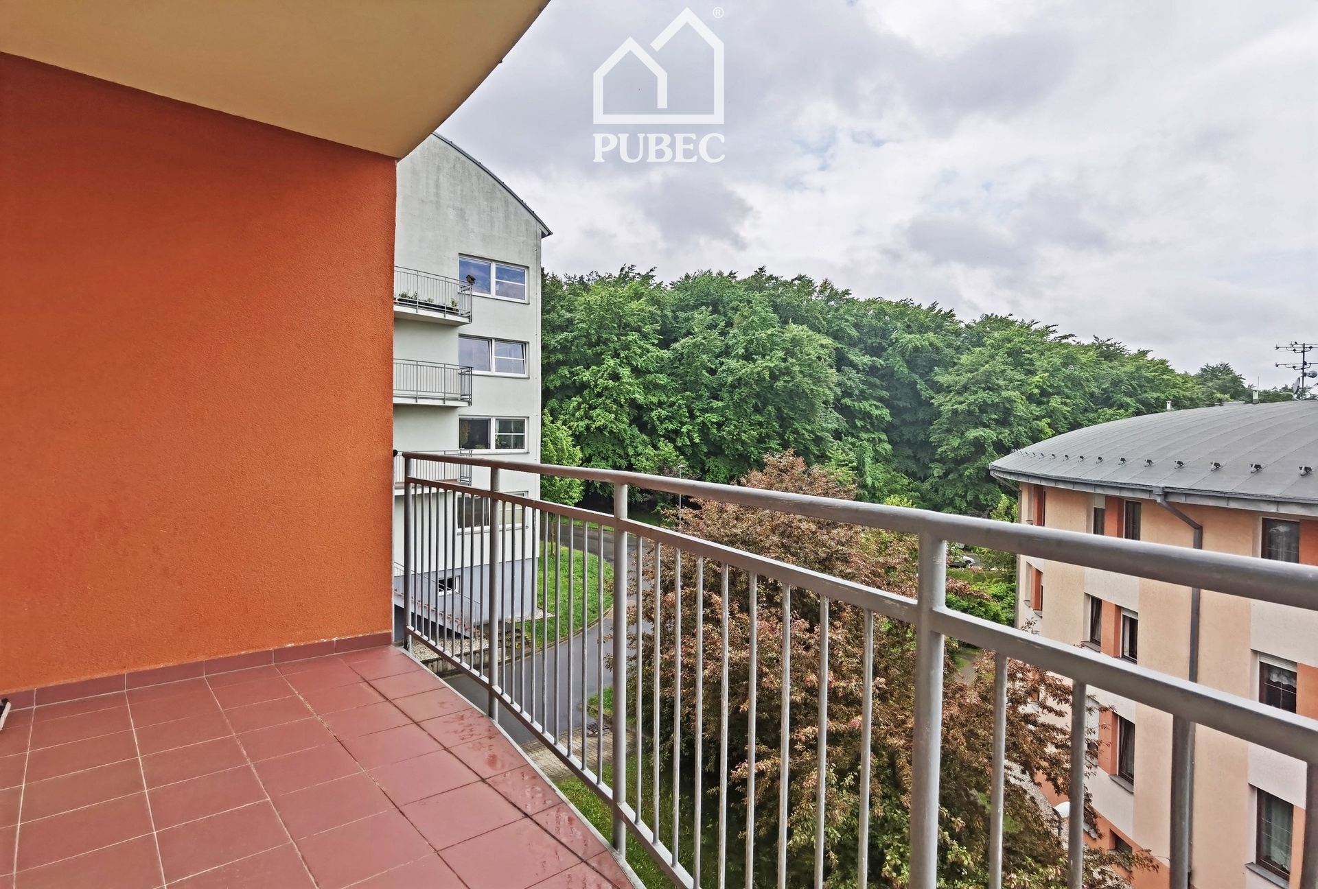 Prostory jsou dispozičně členěny na předsíň, kuchyni s moderní linkou osazenou sklokeramickou varnou deskou, elektrickou a mikrovlnnou troubou, lednicí a digestoří, dále slunný obývací pokoj, ložnici se šatnou, koupelnu s vanou a samostatné WC. Z každého pokoje i kuchyně je přístup na jeden z celkem 3 balkónů. Vytápění a ohřev vody jsou zajištěny dálkově, podlahy pokrývá plovoucí lamino, koberec a dlažba. K bytu náleží užívání sklepa v suterénu domu. Před domem je možnost bezproblémového parkování. K nastěhování ihned.