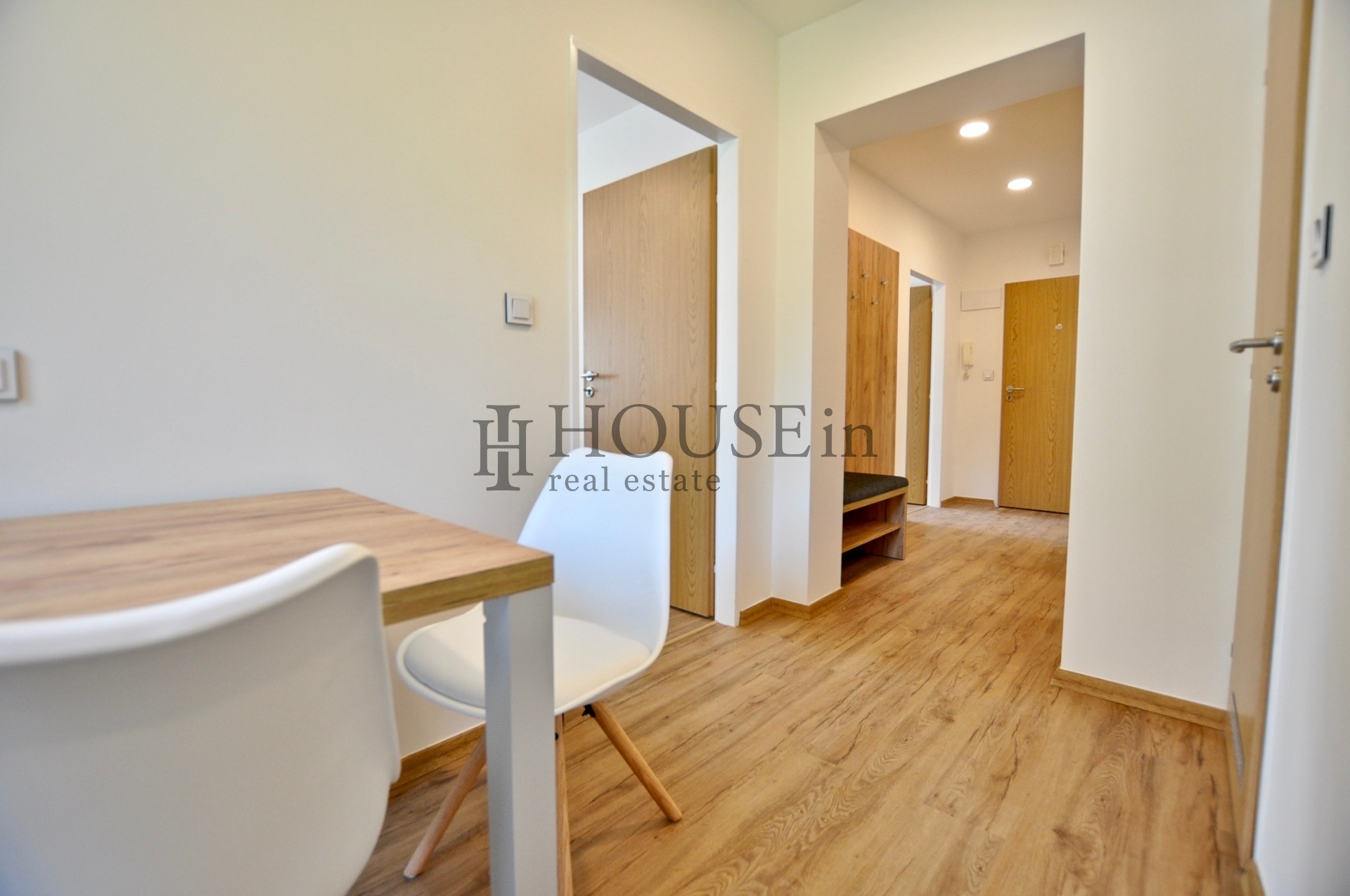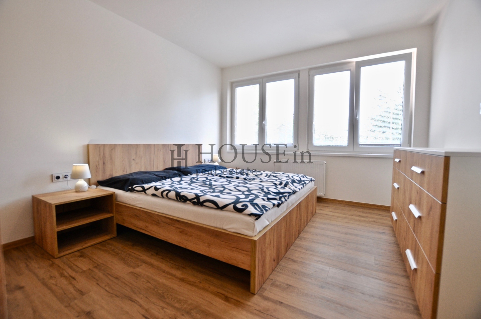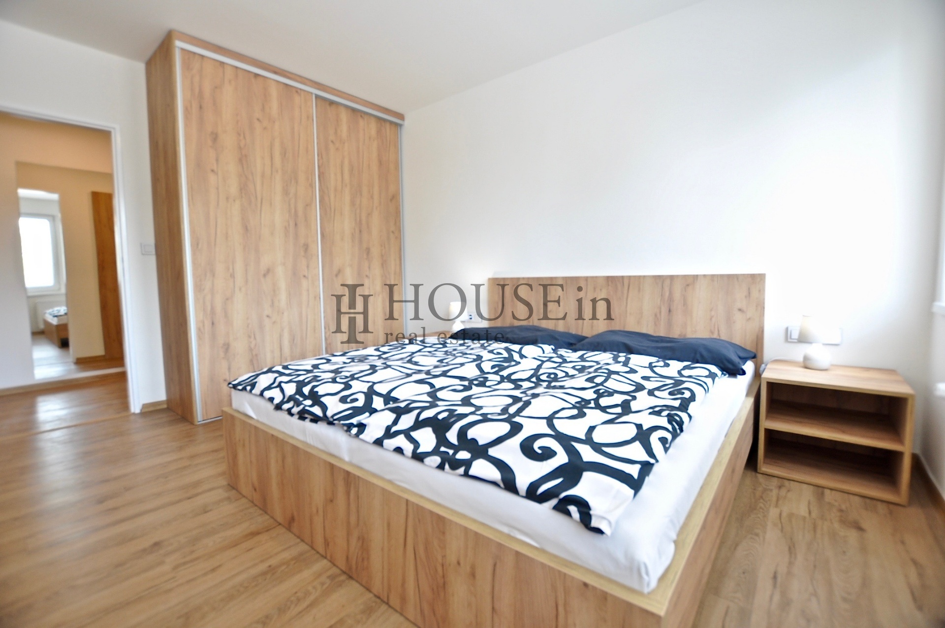 Moderní kuchyňská linka je plně vybavena spotřebiči – lednicí s mrazákem, elektrickou troubou, sklokeramickou varnou deskou, digestoří, myčkou na nádobí a mikrovlnnou troubou. V ložnici je manželská postel s nočními stolky, v jídelní části se nachází stůl se židlemi. V bytě je dostatek úložného prostoru a okna jsou opatřena žaluziemi.