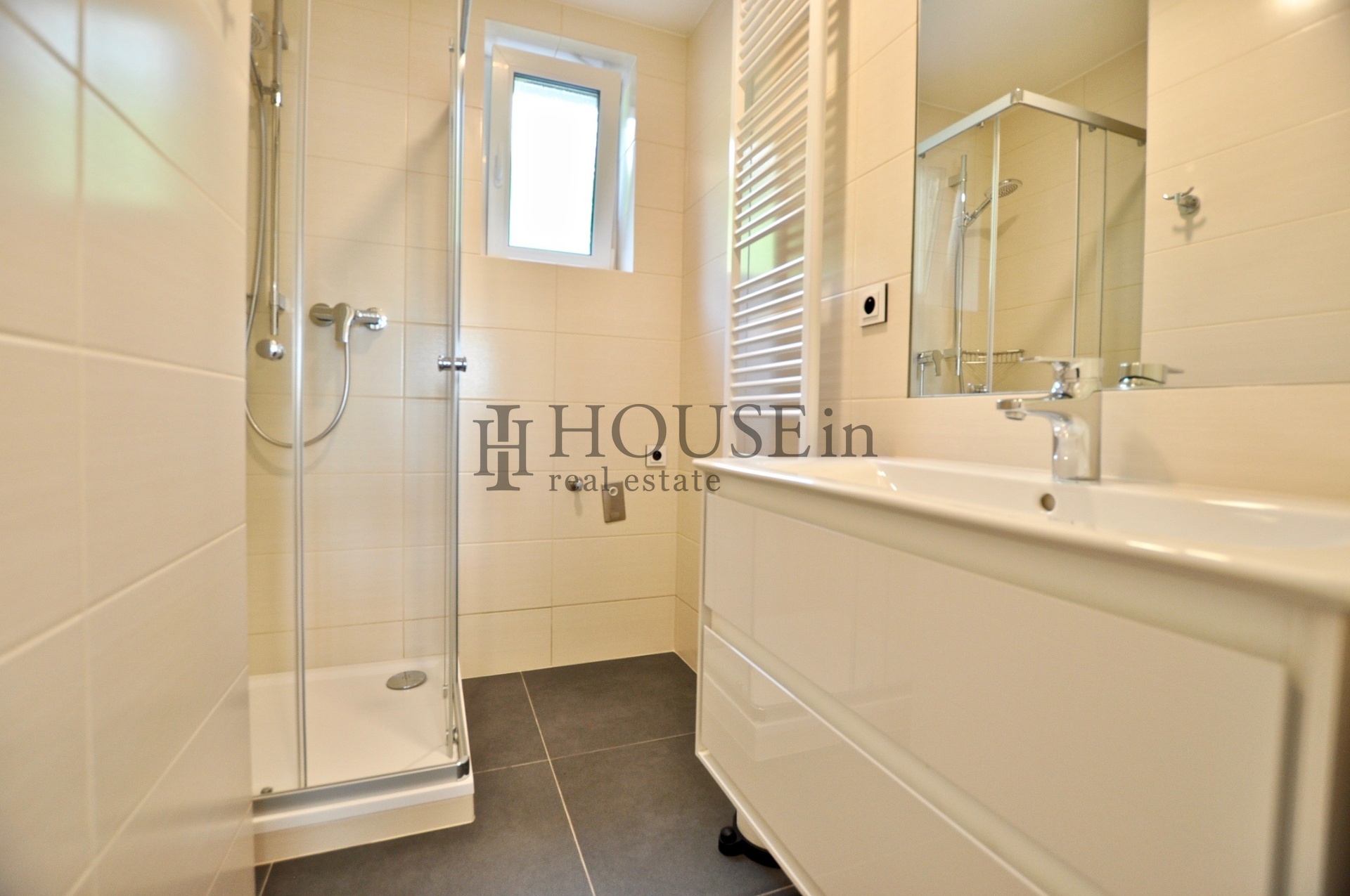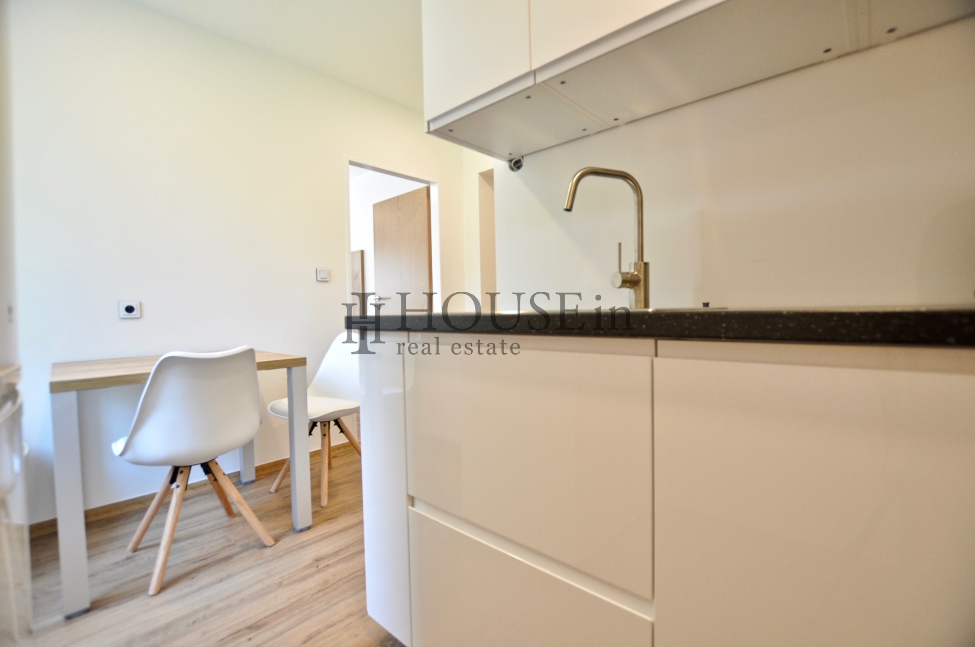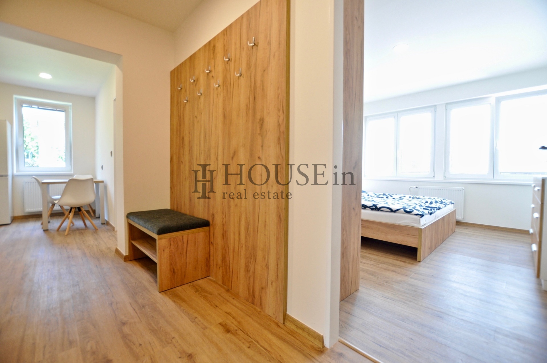 Moderní kuchyňská linka je plně vybavena spotřebiči – lednicí s mrazákem, elektrickou troubou, sklokeramickou varnou deskou, digestoří, myčkou na nádobí a mikrovlnnou troubou. V ložnici je manželská postel s nočními stolky, v jídelní části se nachází stůl se židlemi. V bytě je dostatek úložného prostoru a okna jsou opatřena žaluziemi.