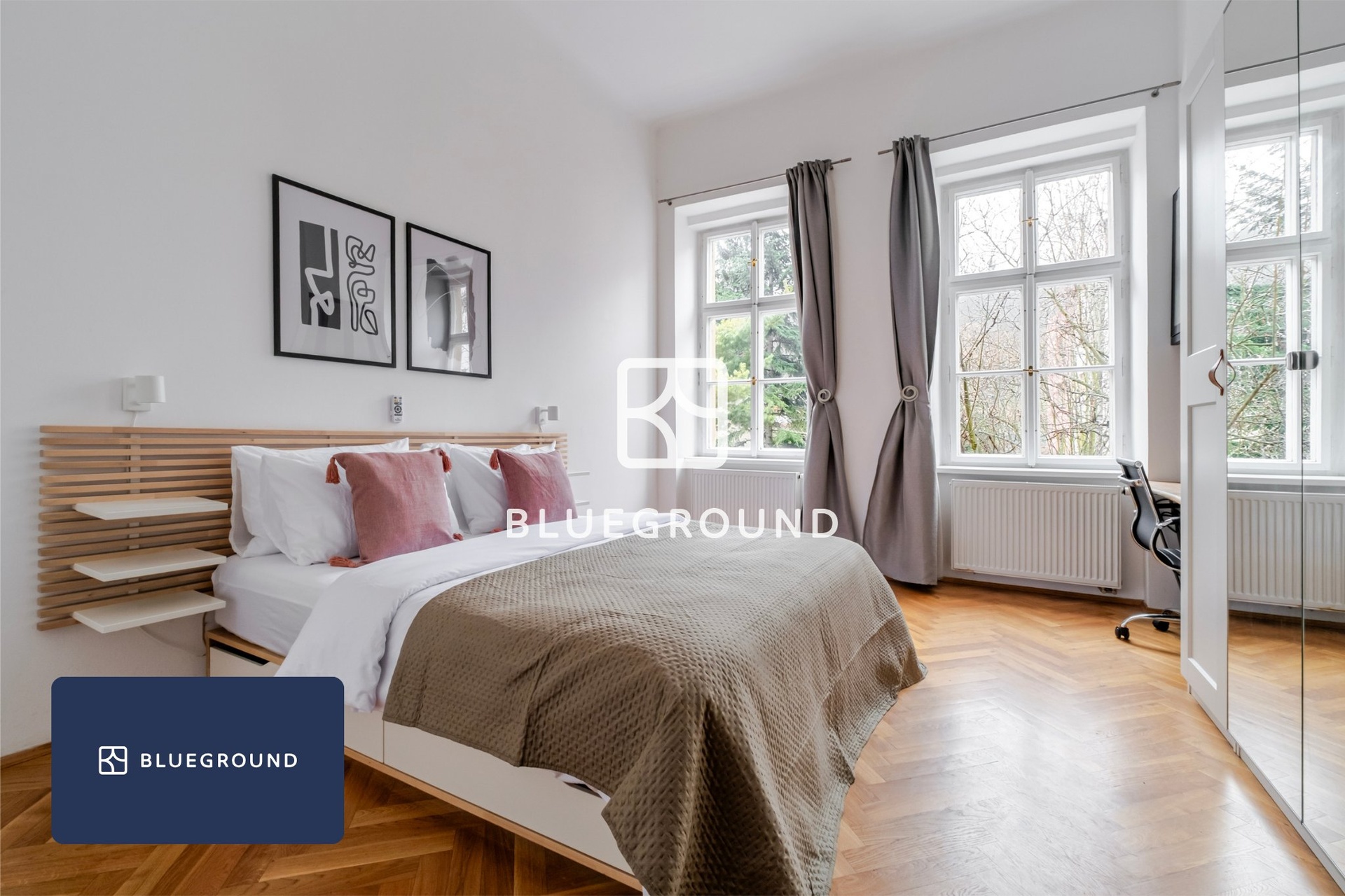 Blueground nabízí plně zařízený byt 2+1 k pronájmu v Újezdě na Malé Straně, dostupný pro pobyty od jednoho měsíce. Tento mimořádně prostorný byt o velikosti 71 m² spojuje klasický pražský šarm s moderním komfortem a je ideální volbou pro jednotlivce nebo páry, kteří hledají prostor, atmosféru a prémiovou centrální lokalitu. Byt je světlý, prakticky řešený a navržený pro pohodlné každodenní bydlení. Pokud hledáte místo, které opravdu vystihuje atmosféru Prahy, právě jste ho našli.