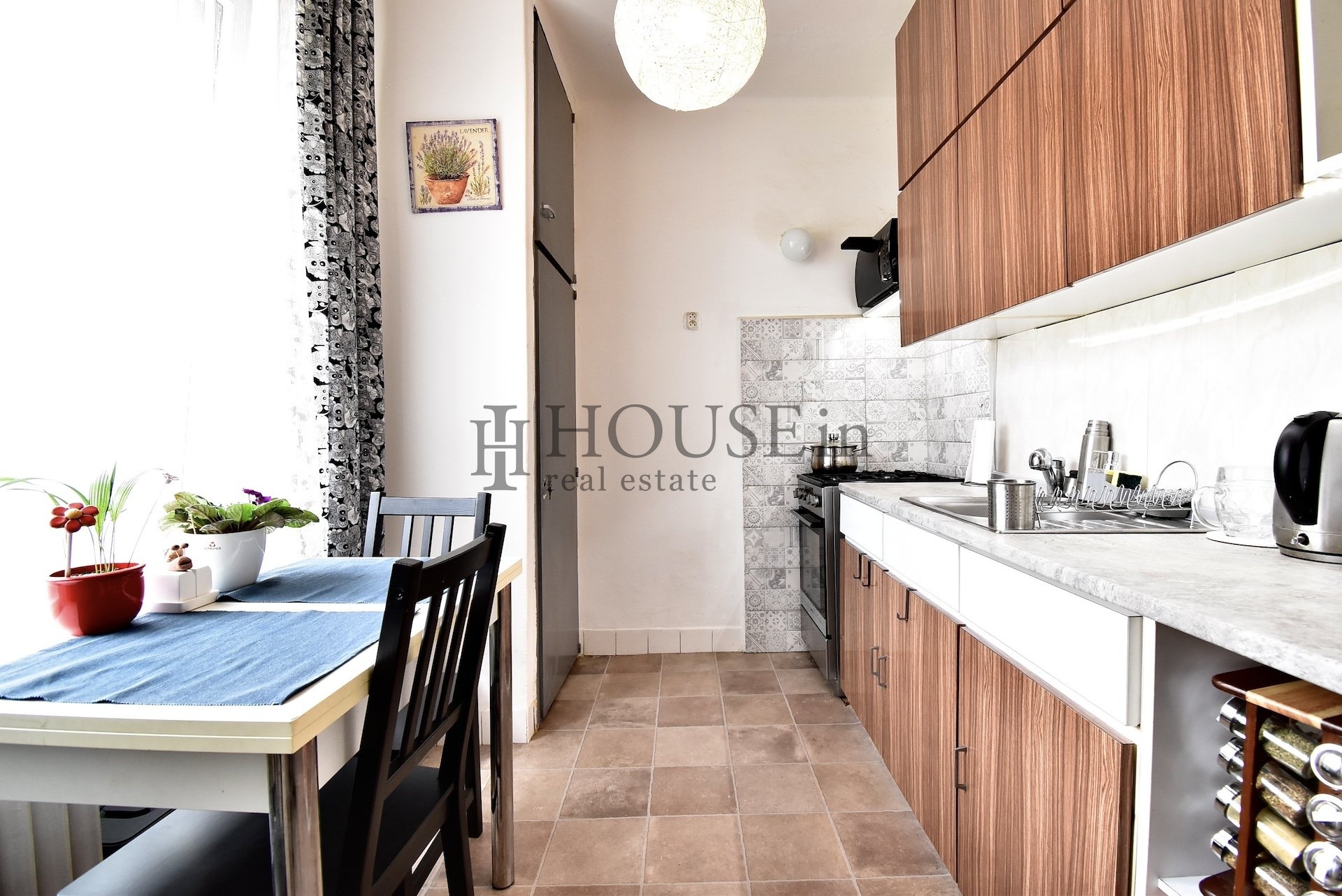 Byt tvoří předsíň s vestavěnými skříněmi, samostatná kuchyně s kuchyňskou linkou a spotřebiči, ložnice, obývací pokoj, koupelna s vanou a samostatné WC. K bytu náleží také balkon sklep. Možnost využití kočárkárny - kolárny v suterénu domu.