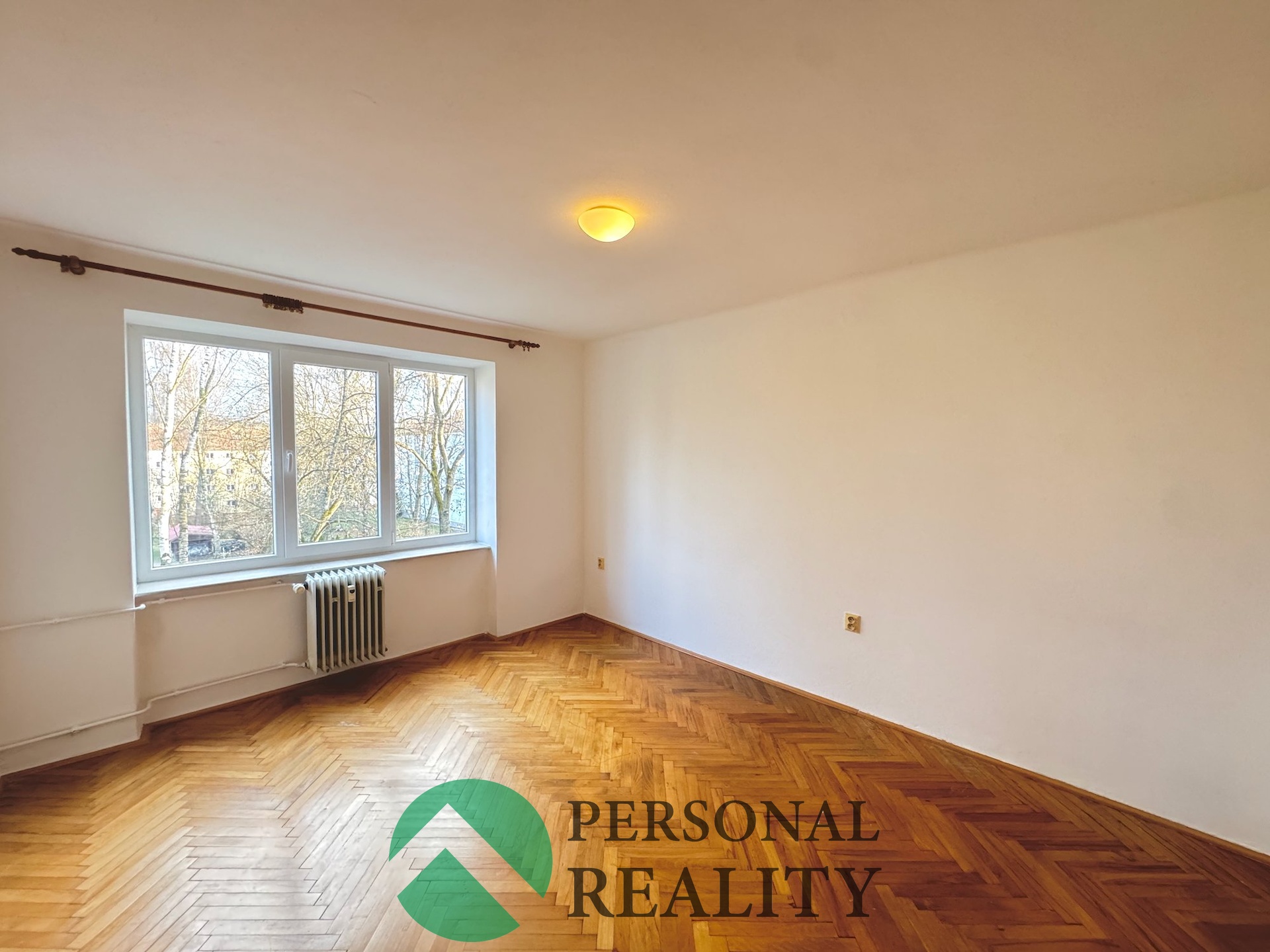 Dispoziční řešení: Průchozí obývací pokoj do ložnice, oddělená toaleta a koupelna s vanou, kuchyně vybavena myčkou a starší lednicí. Podlahy původní udržované parkety a dlažba. Okna plastová.