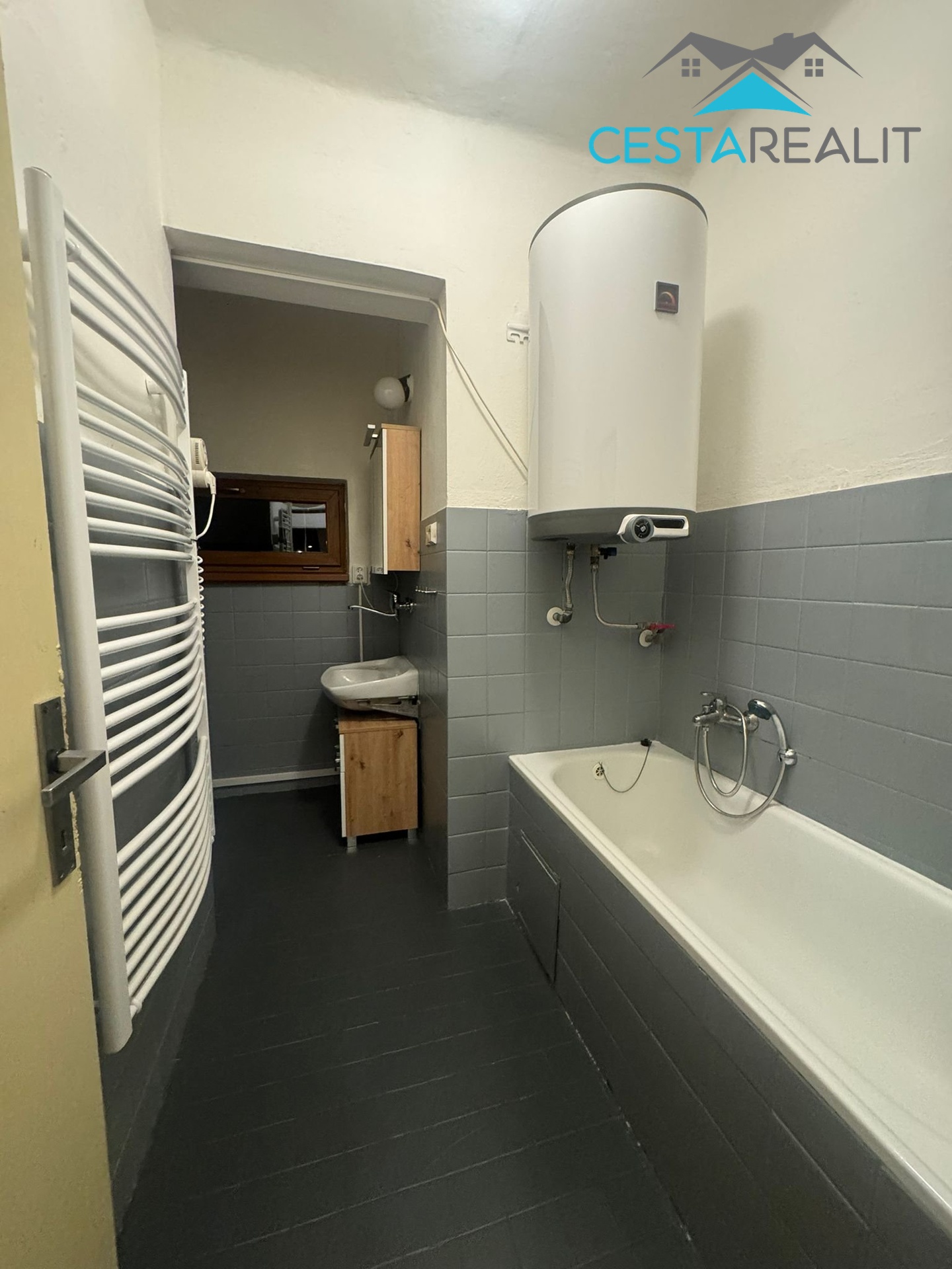 Byt se nachází ve druhém patře a je po rekonstrukci, jen koupelna je původní. Koupelna je prostorná, zařízená, s vanou. WC je samostatné. K bytu náleží sklep.