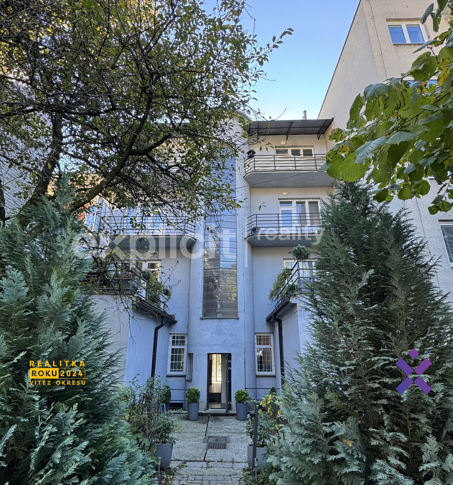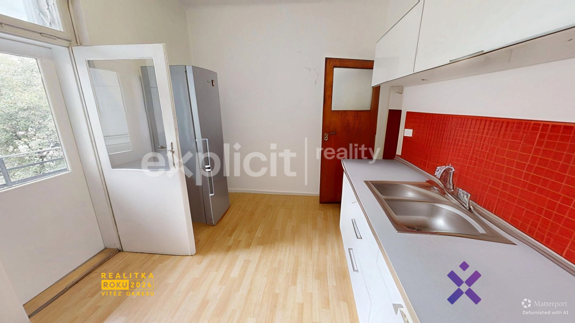 Koupelna je zařízena vanou s možností sprchování, pračkou a toaletou. Kuchyňská linka je pár let nová, moderní, se sporákem a lednicí. Z kuchyně se vstupuje na velký, šestimetrový balkon s nádherným výhledem do zeleně a klidné zahrady – ideální místo k ranní kávě i večernímu odpočinku. Přestože si tu užijete ticho a pohodu, centrum města je vzdálené jen pár minut chůze.